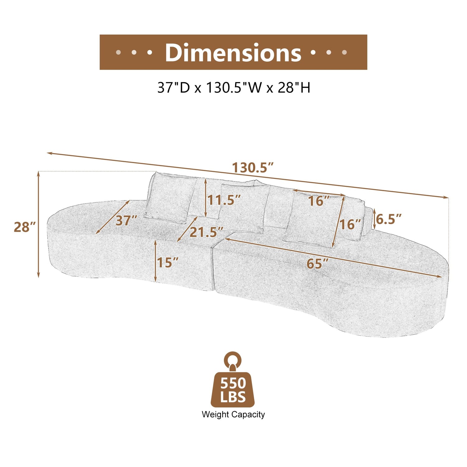 - SPACIOUS & STURDY OVERSIZED MODERN COUCH:Measuring 37"D x 130.5"W x 28"H, this large sectional couch easily accommodates 3–4 people with a weight capacity of up to 550 lbs. Complete with three plush pillows, this big comfy couch features a deep, wide design that invites you to stretch out fully—ideal for lounging, napping, or hosting guests.