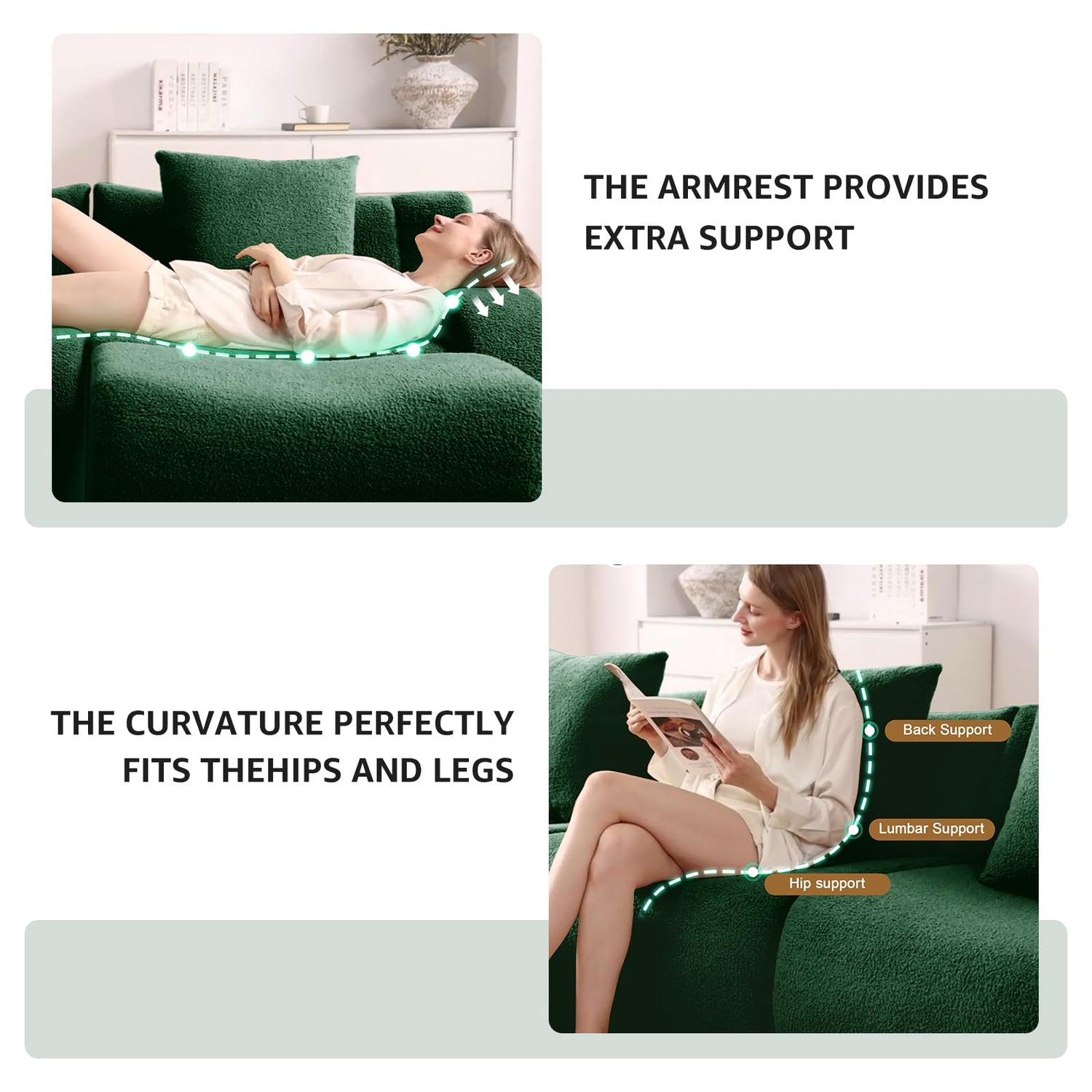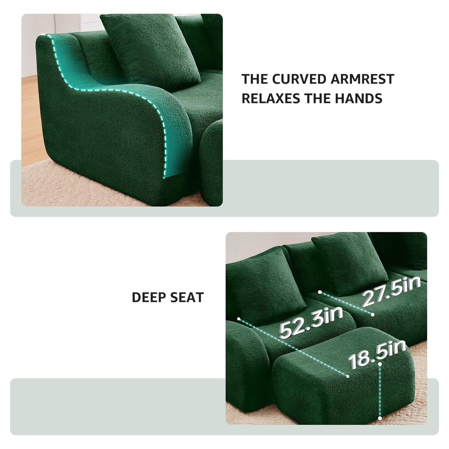 Green Modular Cloud Couch Loveseat with 1 Ottoman, Teddy Fabric Boneless Sectional Sofa in a Box, Comfortable Floor Sofa for Living Room, No Assembly Required, Sofas para Sala