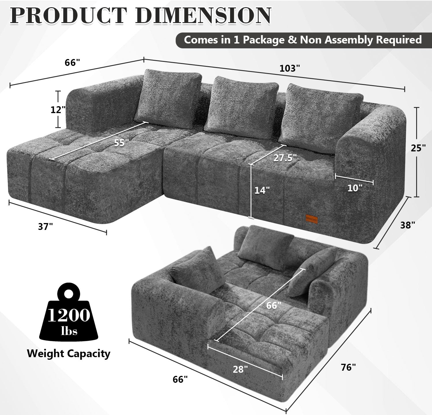 - No Assembly, Instant Setup: Zero tools required—unpack, gently pat to shape, and enjoy within 72 hours. The waterproof, anti-slip base keeps the sofa securely in place, even on hardwood floors.