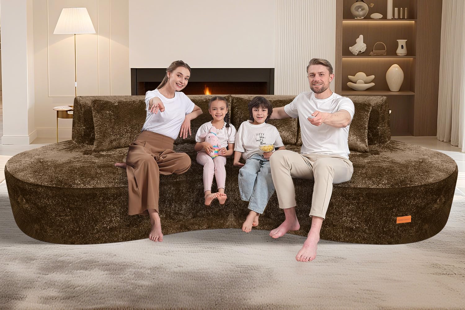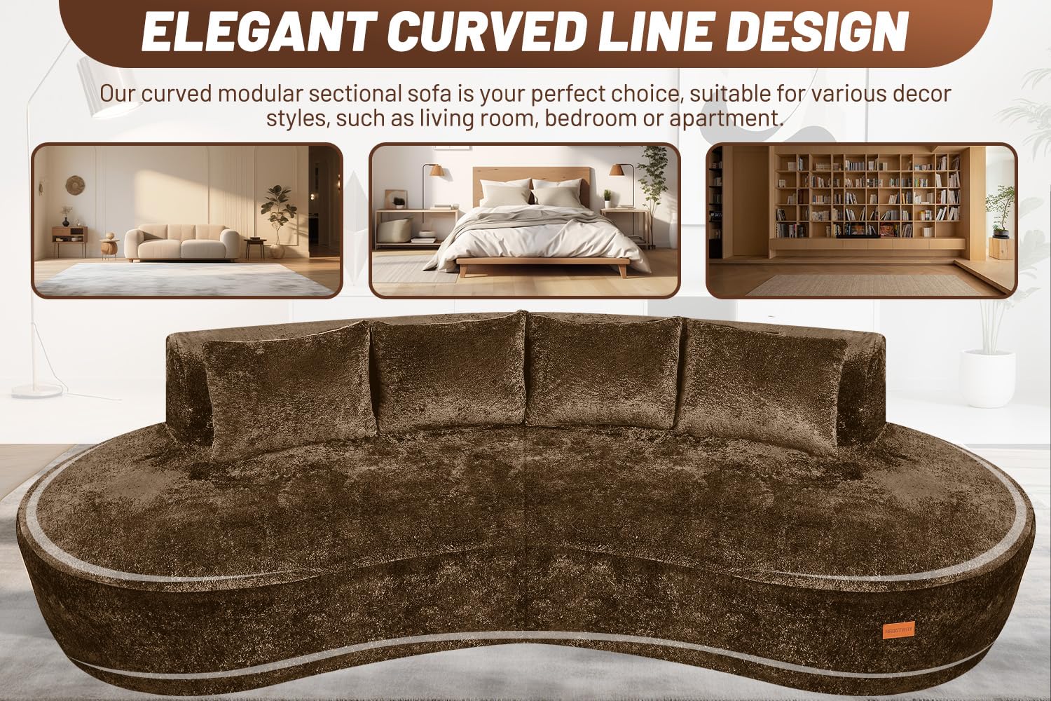 HABUTWAY 104'' Modular Sectional Sofa with Memory Foam Filled, Modern Curved Sofa Deep Seat Cloud Couch with 4 Pillows, No Assembly Required, Oversized Couches for Living Room Apartment Office, Brown