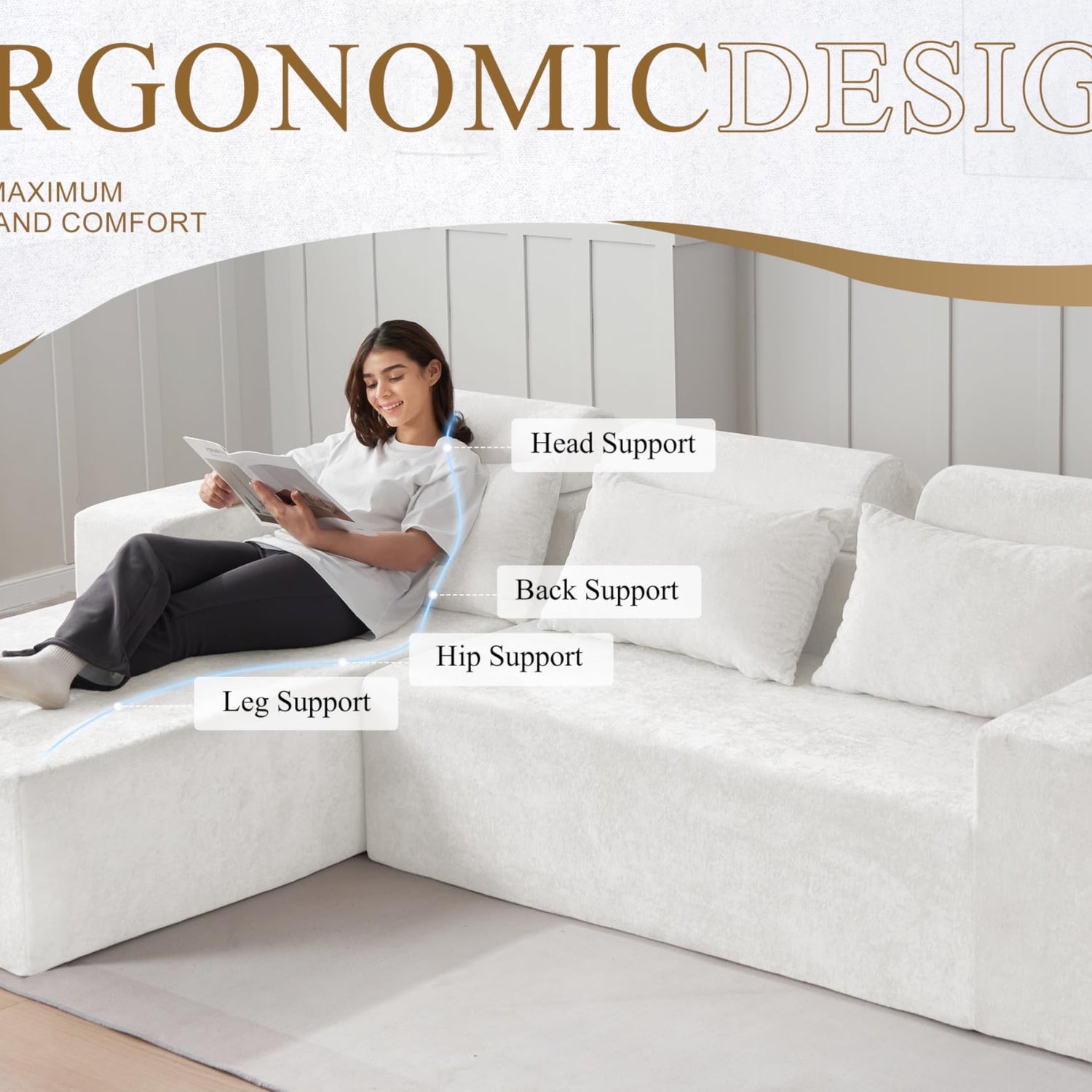 - Comfortable Chaise Lounge Couch: Experience cloud-like comfort with this sectional couch. Our cloud couch features a deep seat and lounge chair, perfect for relaxing or entertaining guests. It adopts high elastic foam, surpassing the traditional sofa and enjoying the comfort matching the body curve.