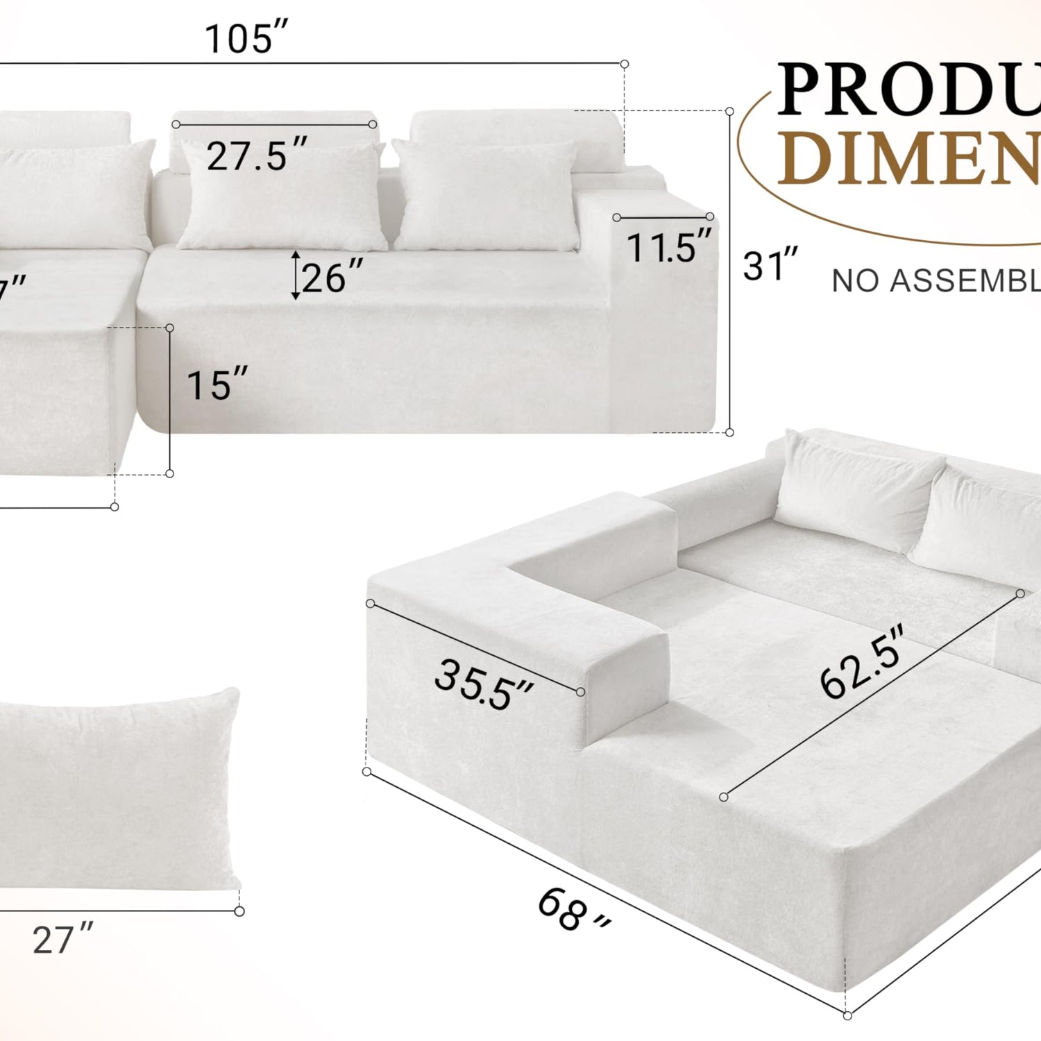 - No Assembly Required: Skip the hassle of furniture assembly with this modular couch. Simply unbox, fluff, and enjoy. It may take up to 48-72 hours to fully expand, but trust us, it’s worth it. Enjoy the relaxed joy without assembly to the fullest!