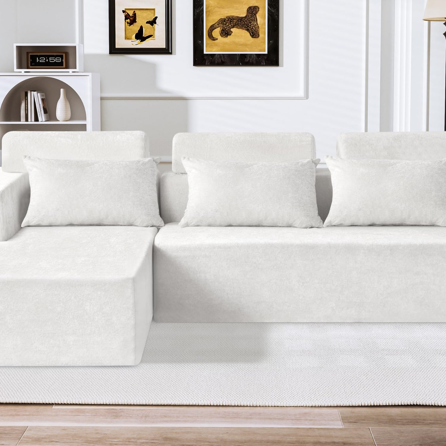 - Premium Fabric: Luxury distressed velvet fabric boasts a soft, luxurious texture with a subtle sheen, offering silky comfort and durability. It's wrinkle-resistant and easy to clean design ensures long-lasting freshness. Choose this sectional couch is an ideal choice for creating a high-end atmosphere.