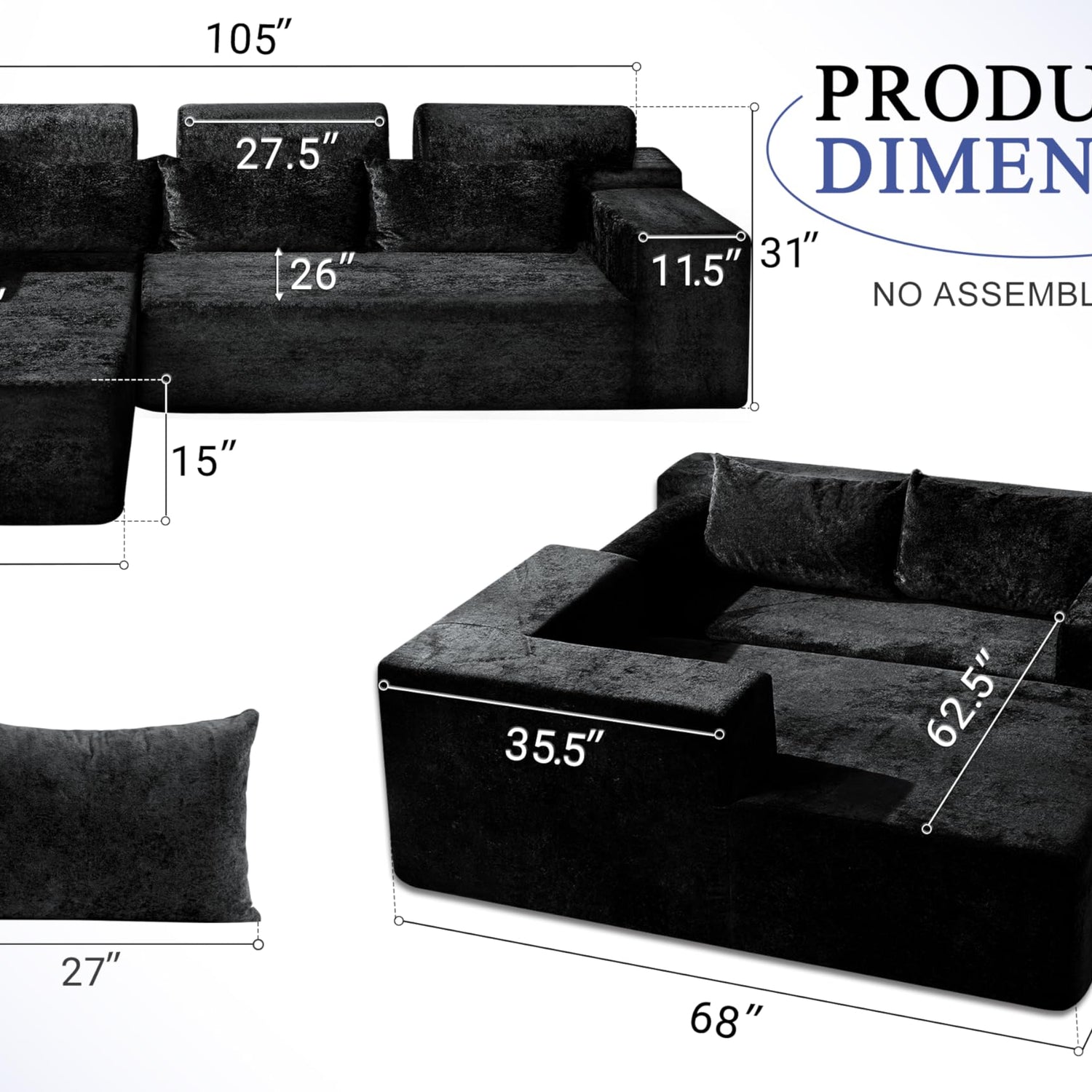 - No Assembly Required: Skip the hassle of furniture assembly with this modular couch. Simply unbox, fluff, and enjoy. It may take up to 48-72 hours to fully expand, but trust us, it’s worth it. Enjoy the relaxed joy without assembly to the fullest!