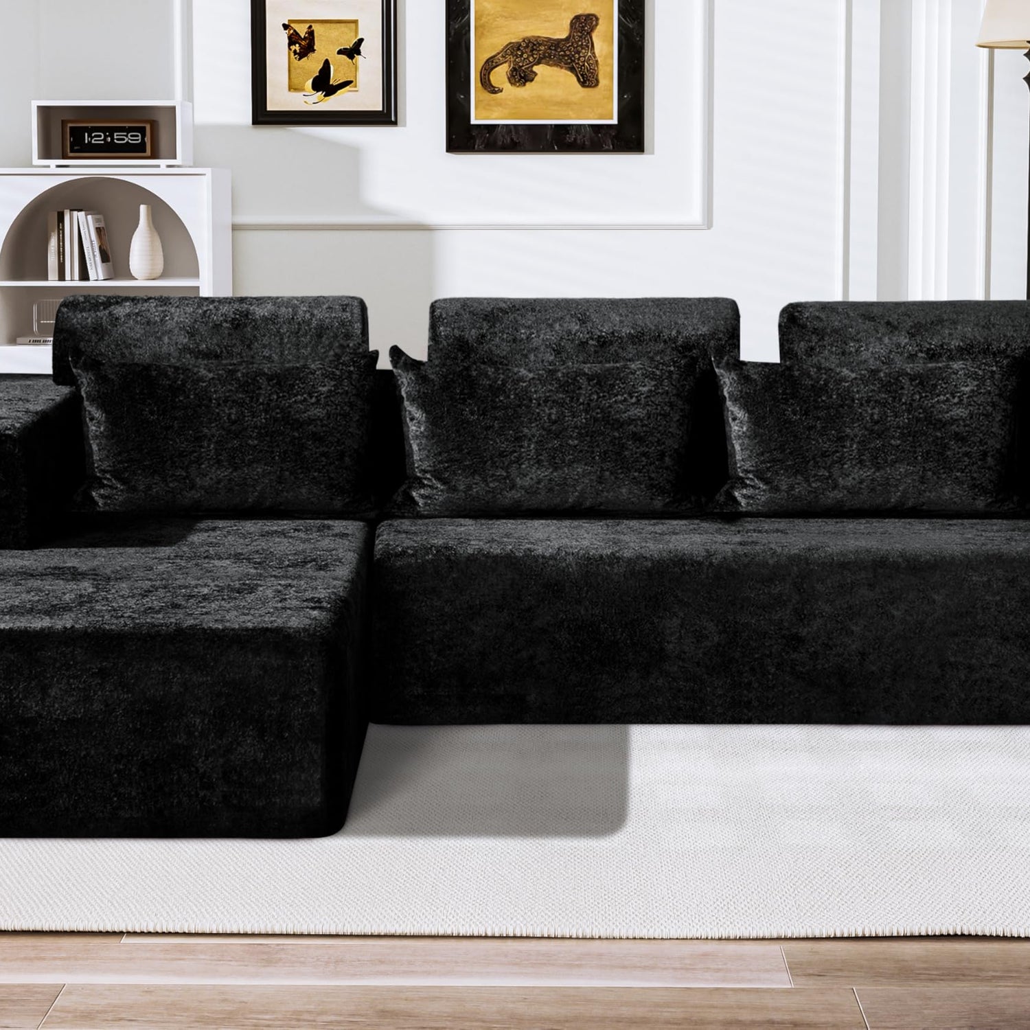 HABUTWAY 105" L-Shape Modular Sectional Sofa Couch for Living Room,No Assembly Required,Modular Comfy Sofa with Deep Seat for Living Room Bedroom,Luxury Distressed Velvet(Left,Black)