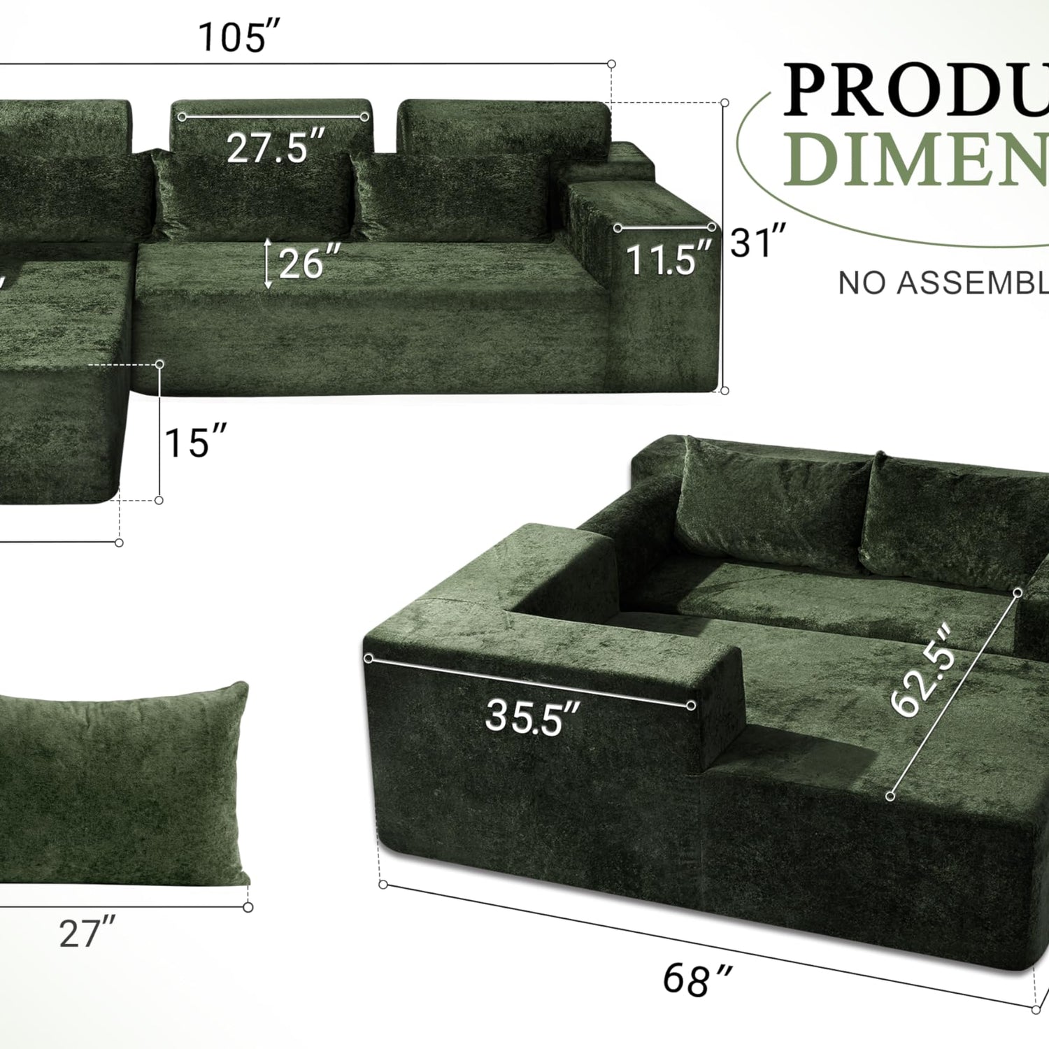 - No Assembly Required: Skip the hassle of furniture assembly with this modular couch. Simply unbox, fluff, and enjoy. It may take up to 48-72 hours to fully expand, but trust us, it’s worth it. Enjoy the relaxed joy without assembly to the fullest!