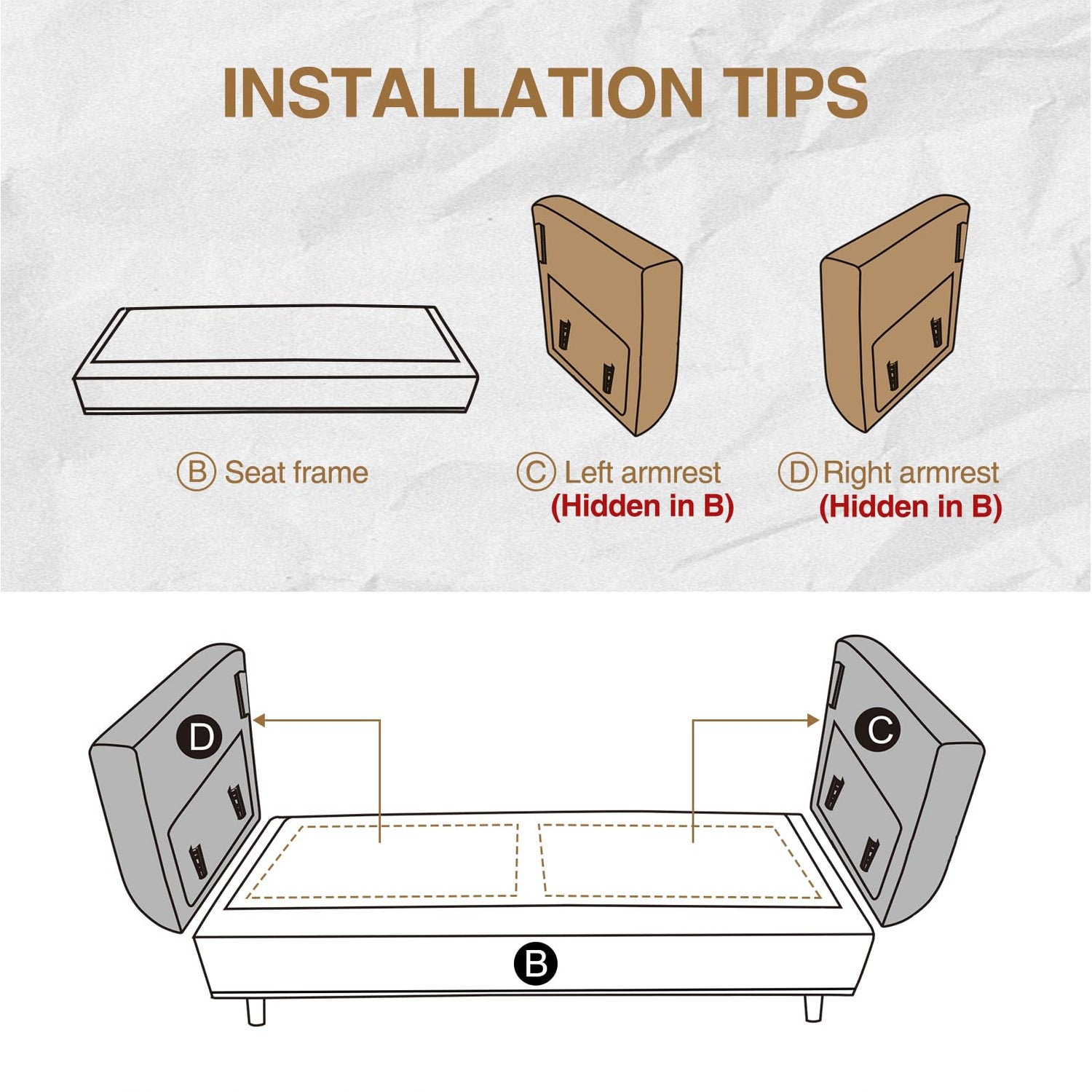- Easy Assembly: This mini couch is shipped in a box with detailed installation instructions.For space-saving transportation, the two armrests are inside the sofa base. Check out the assembly video for quick installation