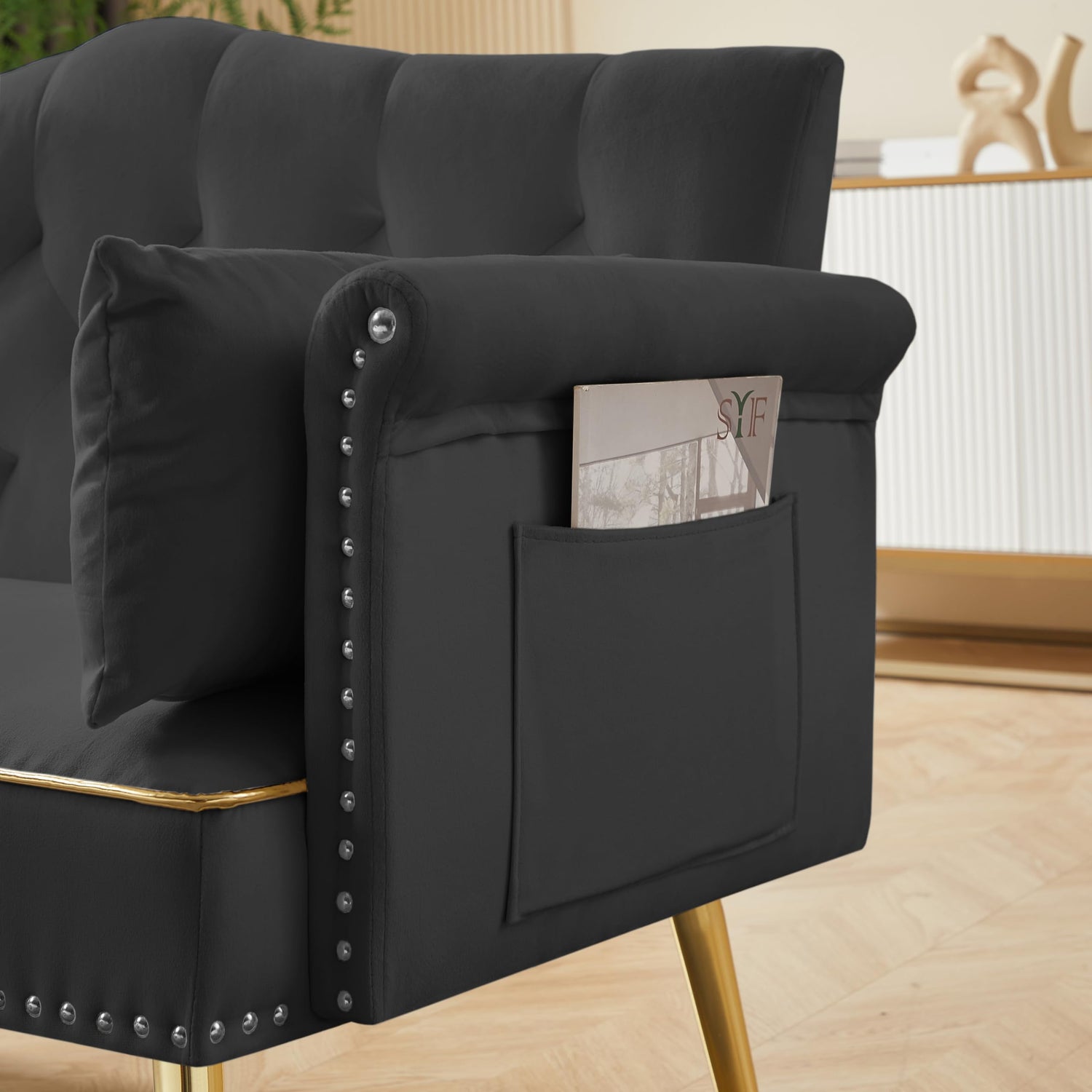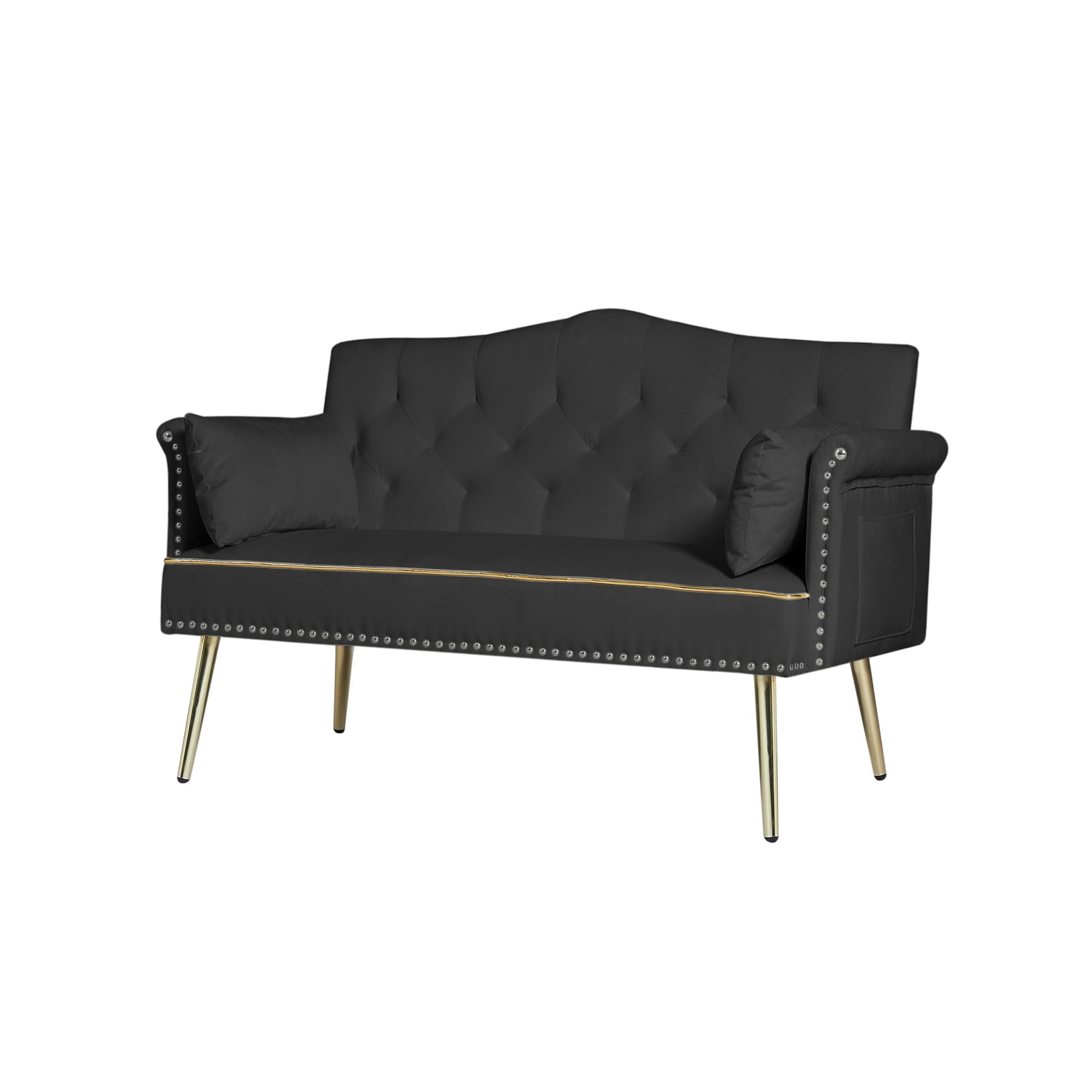 hansones 55-Inch Modern Velvet Loveseat Sofa with Gold Metal Legs & Side Pockets, Tufted Backrest, Perfect for Living Room, Bedroom, or Office (Black)
