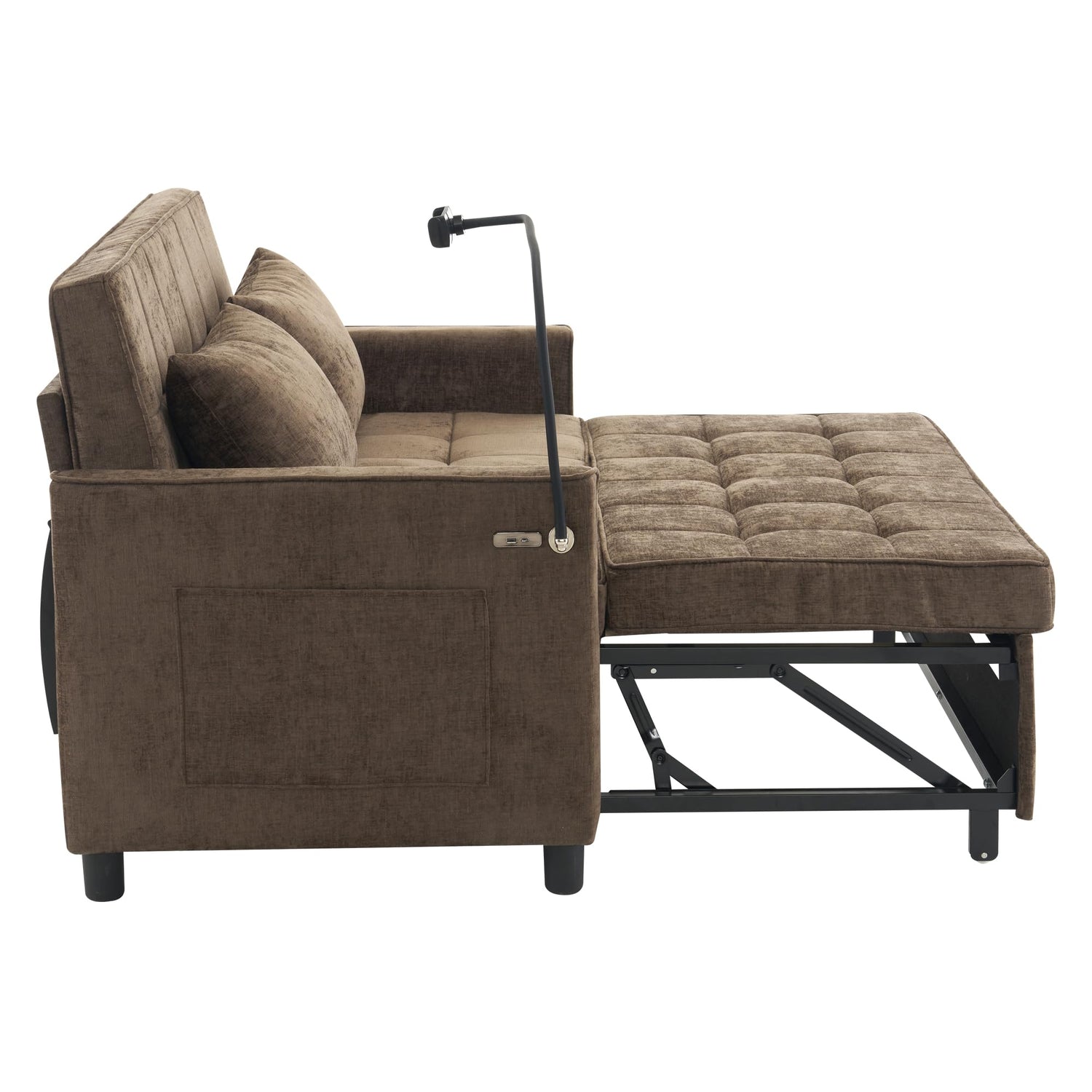 - Dual USB Ports - The sofa bed is equipped with two USB ports and a phone holder, offering incredible convenience for modern living. With the USB ports, you can easily charge your devices while relaxing on the sofa bed, eliminating the hassle of searching for outlets. The phone holder keeps your device within reach, allowing you to watch videos, browse, or video chat without needing to hold your phone.