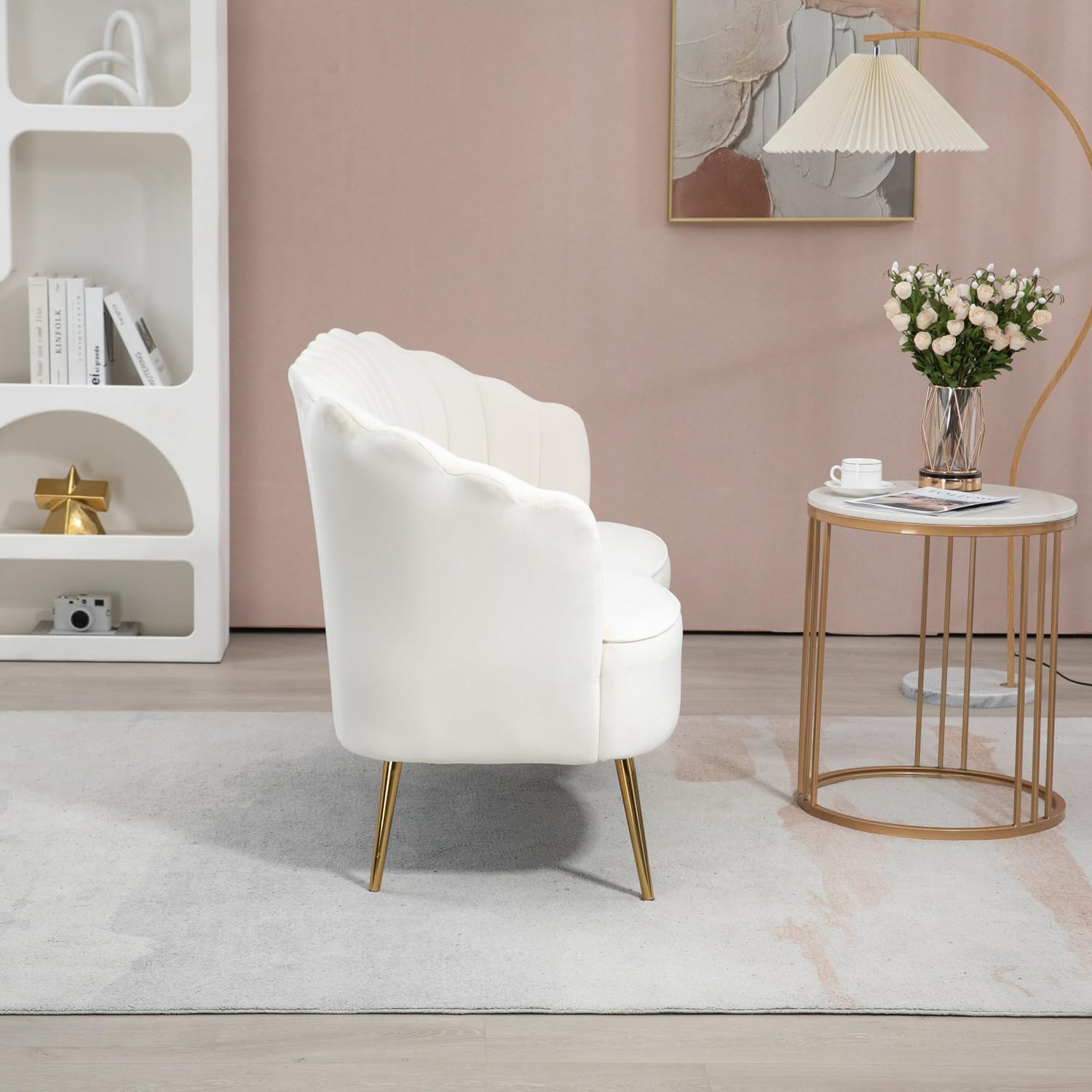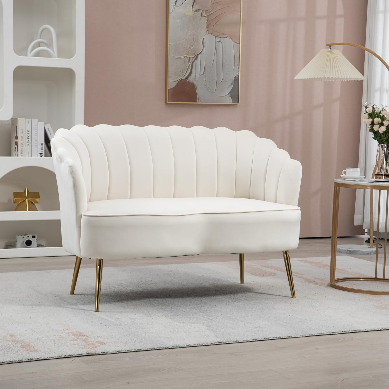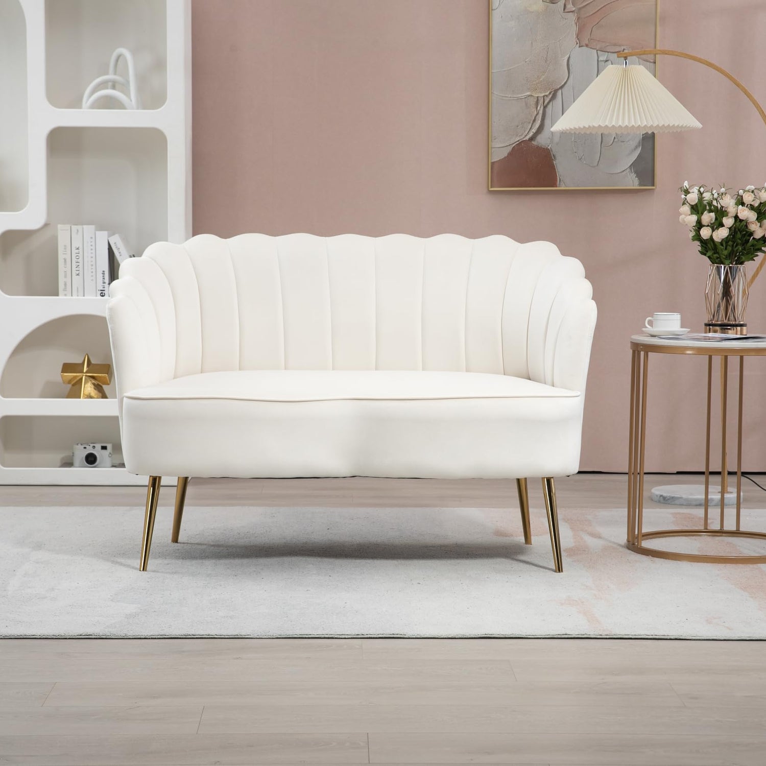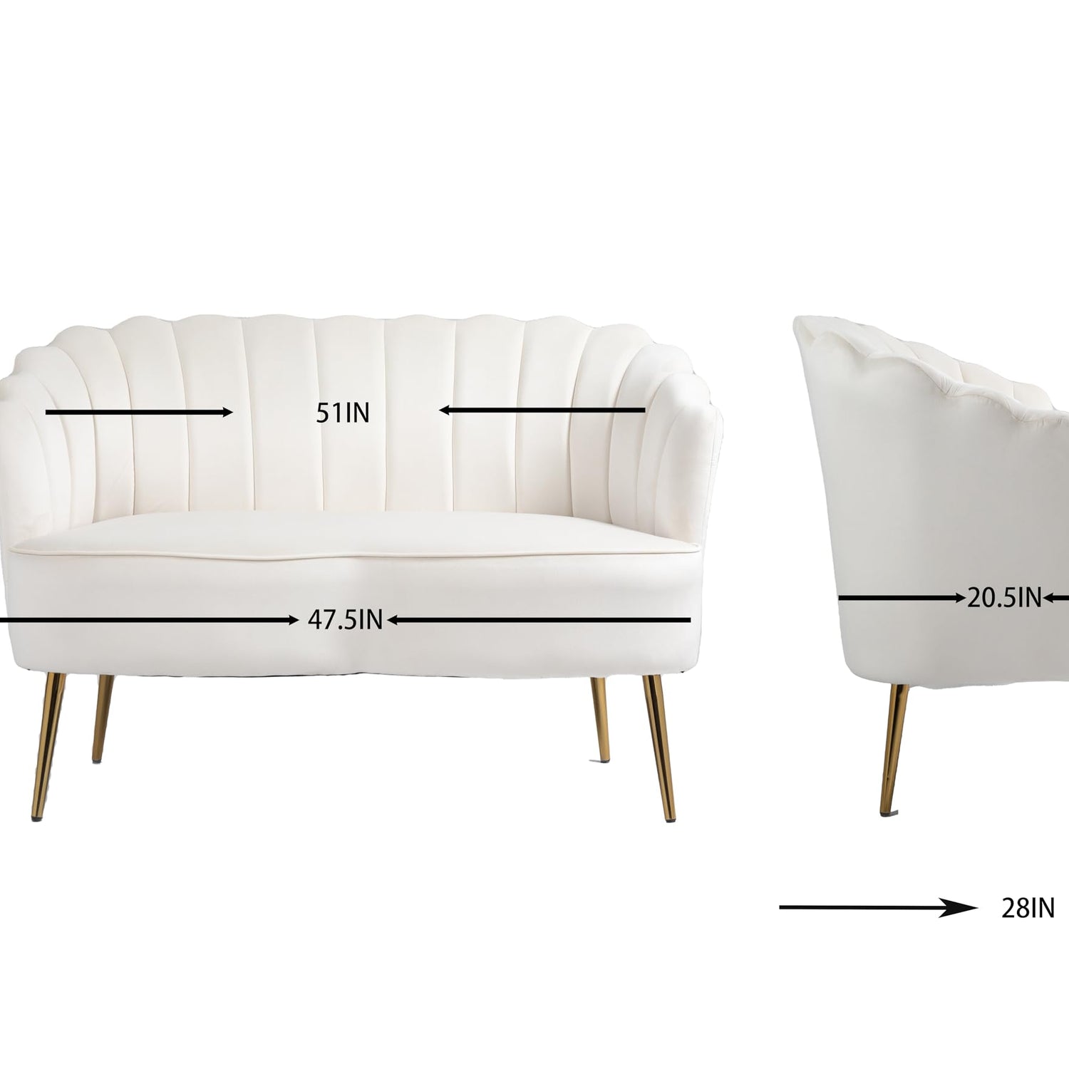 hegmentine Contemporary Velvet Loveseat Sofa,Modern Sofa Couch,Velvet 2-Seater Sofa with Durable Metal Legs and Comfort Back Cushion for Compact Living Room or Apartment,Living Room(White)