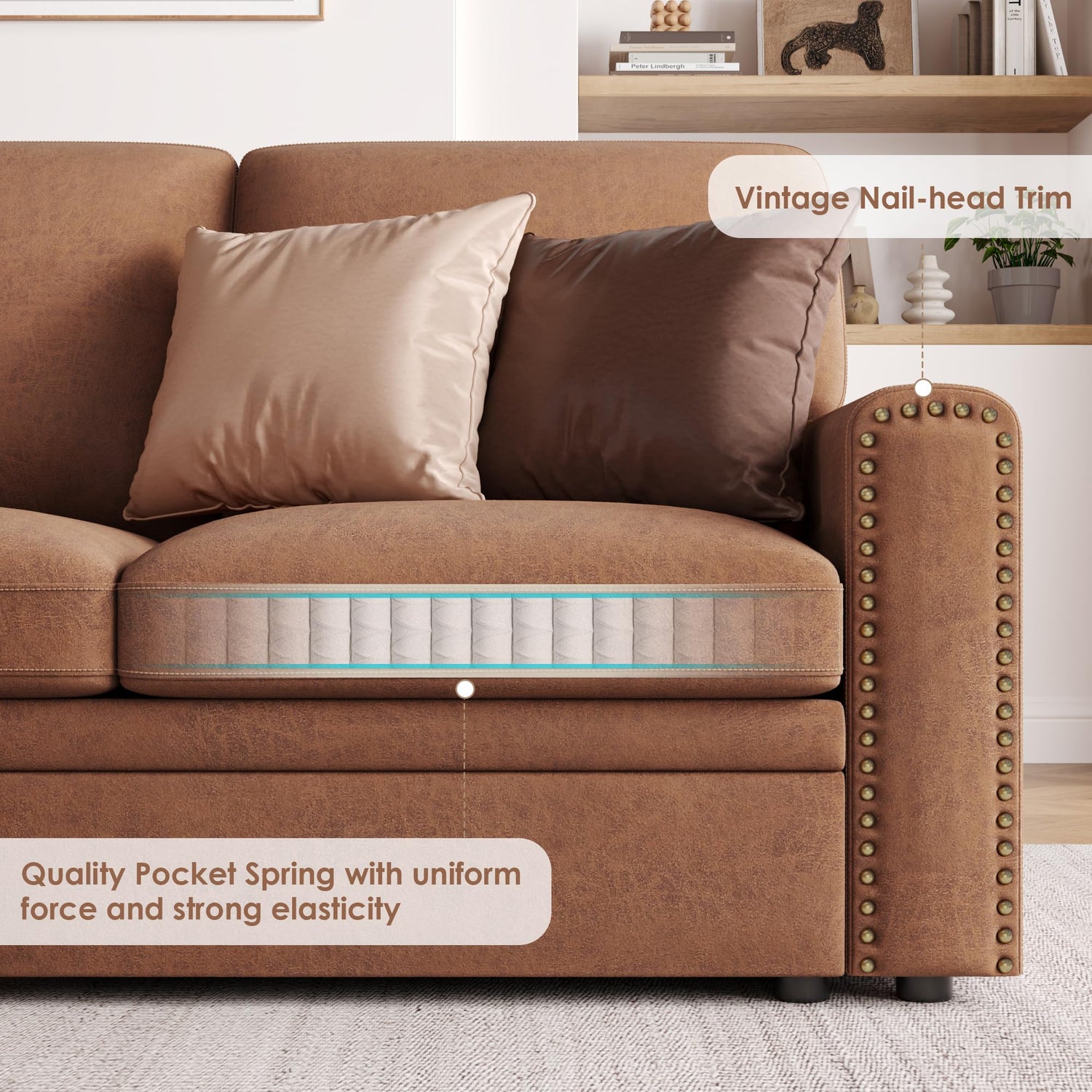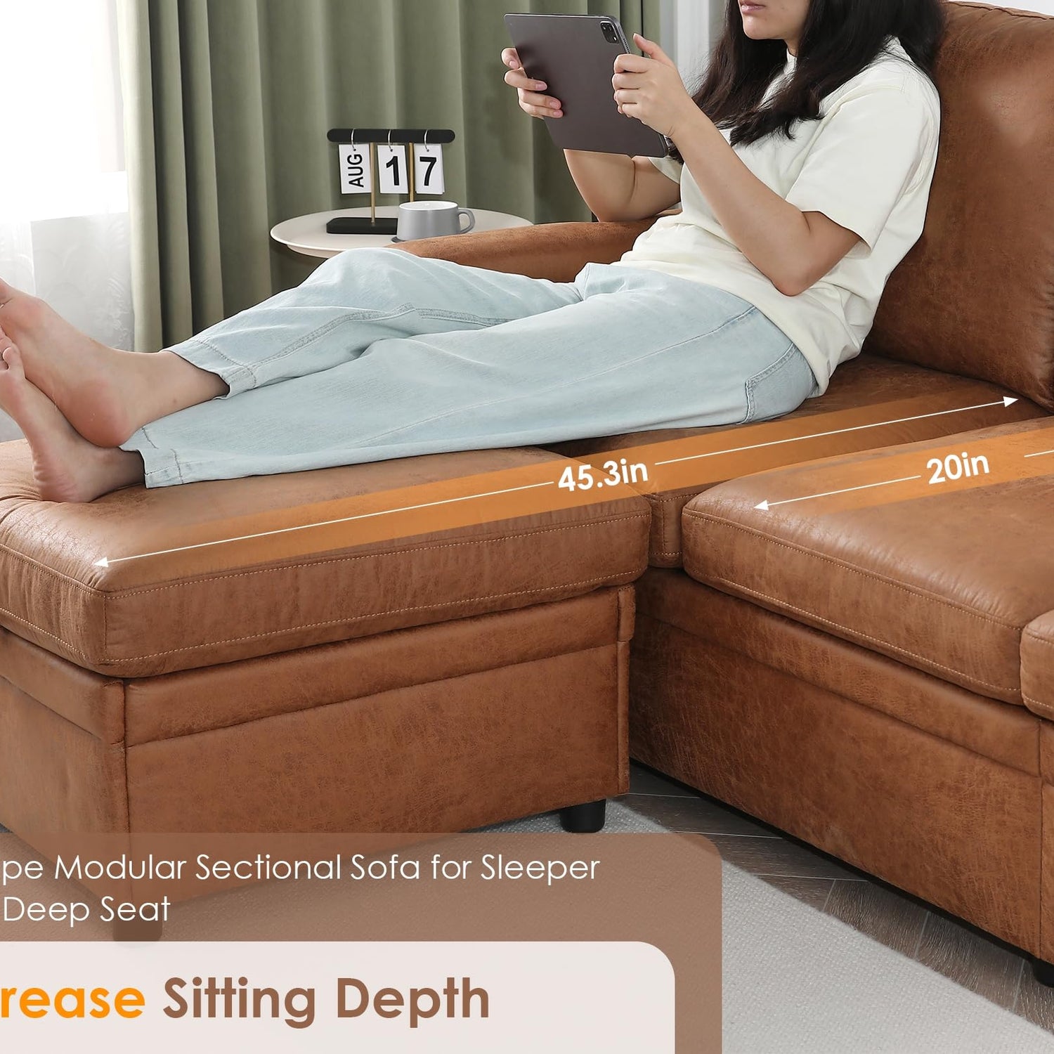 • Modular Sectional Sofa with 2 Movable Storage Seats: Our sectional couches can be freely combined by moving the 2 ottomans, which turns a normal sofa into a sleeper sofa bed, a U-shaped sofa, or an L-shaped sofa; You can create a sofa that fits your space perfectly and matches any occasion