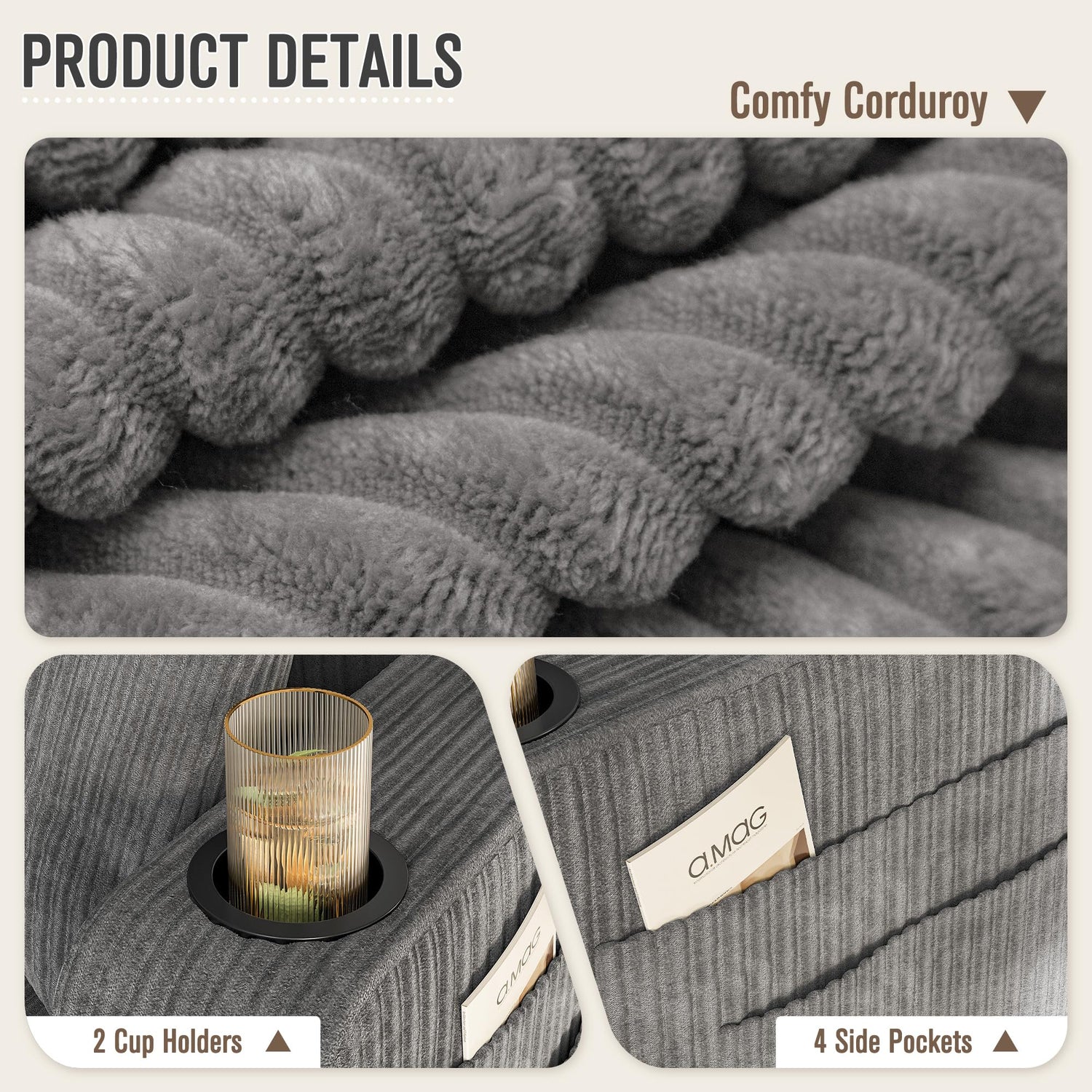 - Upholstered Sofa: Our couch is covered with corduroy, which is more soft and comfortable. Removable cushion is easy to dry clean. The sturdy legs with elevated design keeps the base of the sofa clean