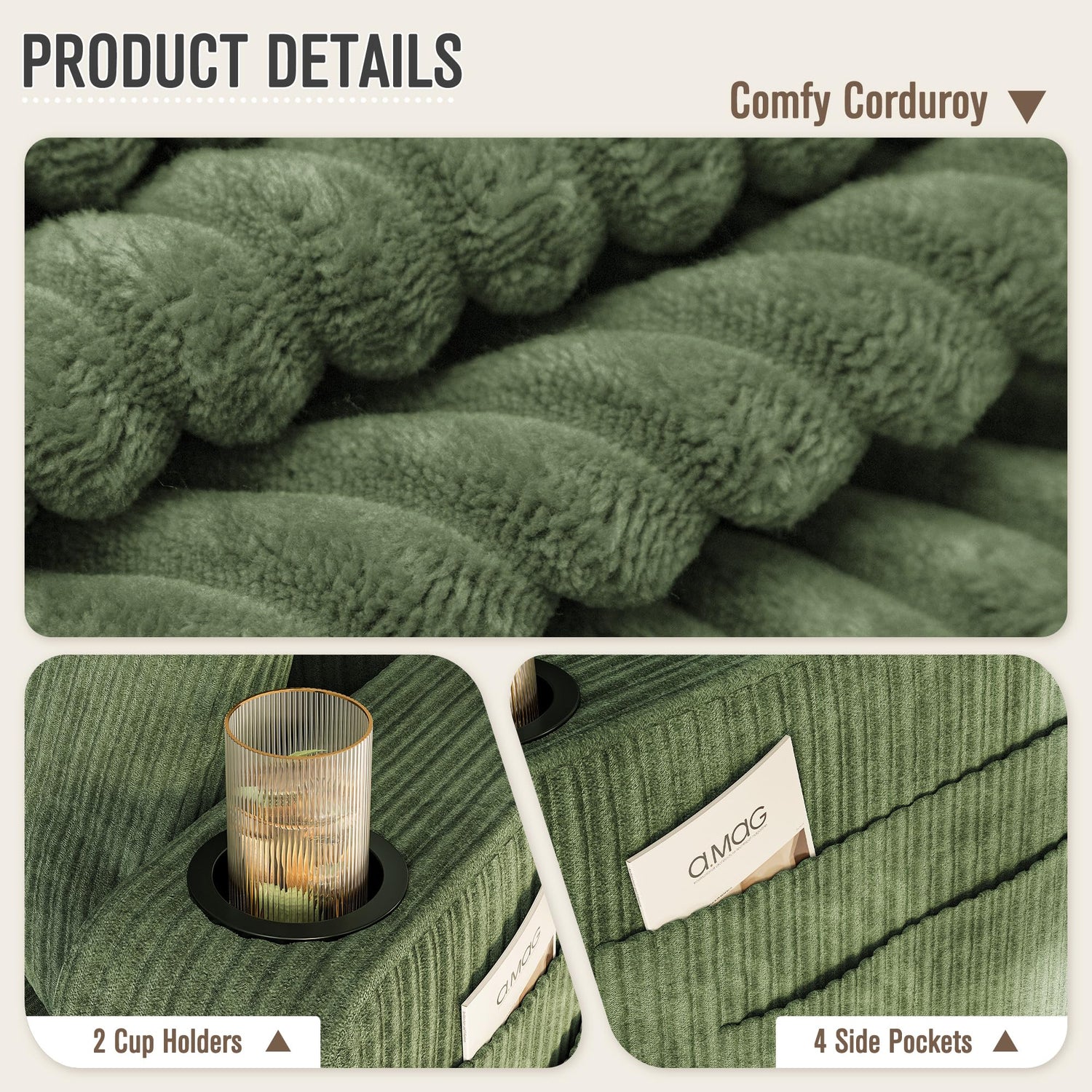 This sofa is classic in color and modern in design, which can really complement your living room style. Corduroy-covered for a smooth touch. 2 cup holders and 4 side pockets provide you with convenience