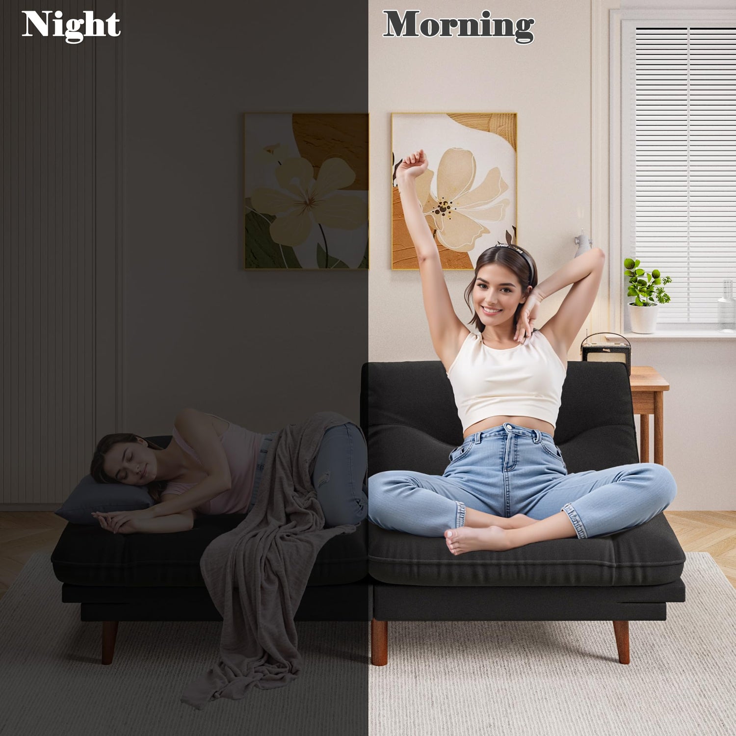 - 3-in-1 Convertible Futon Sofa Bed: The futon sofa bed skillfully blends a stylish futon sofa with a practical convertible sleeper and bed design. The smooth push-pull mechanism allows for effortless transitions between sofa and bed modes. Whether you're indulging in TV watching, gaming, or seeking a cozy sleeping spot, this sofa bed caters to all your needs.
