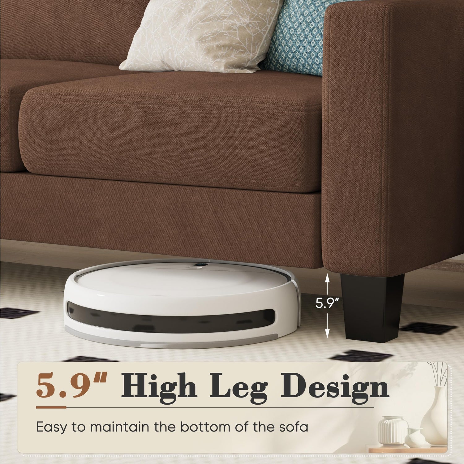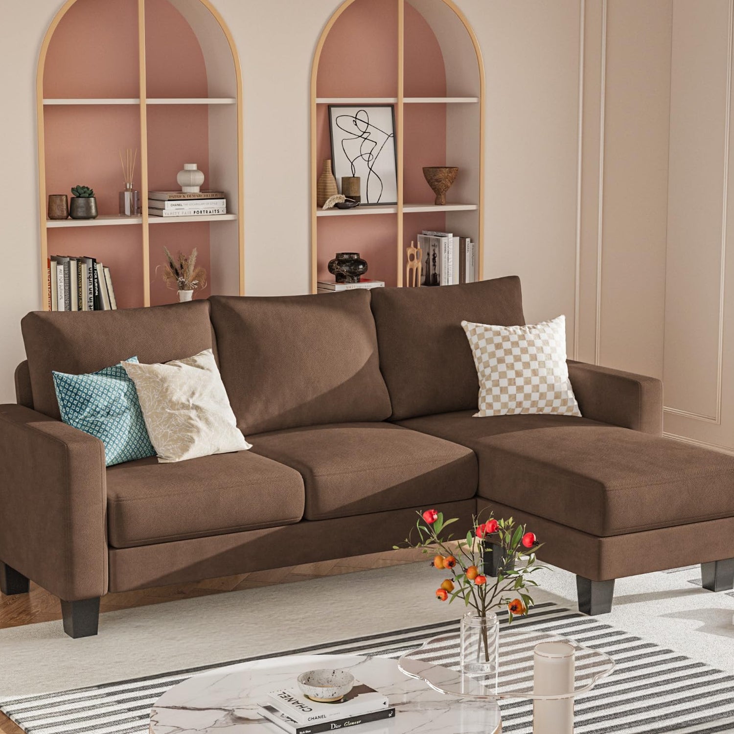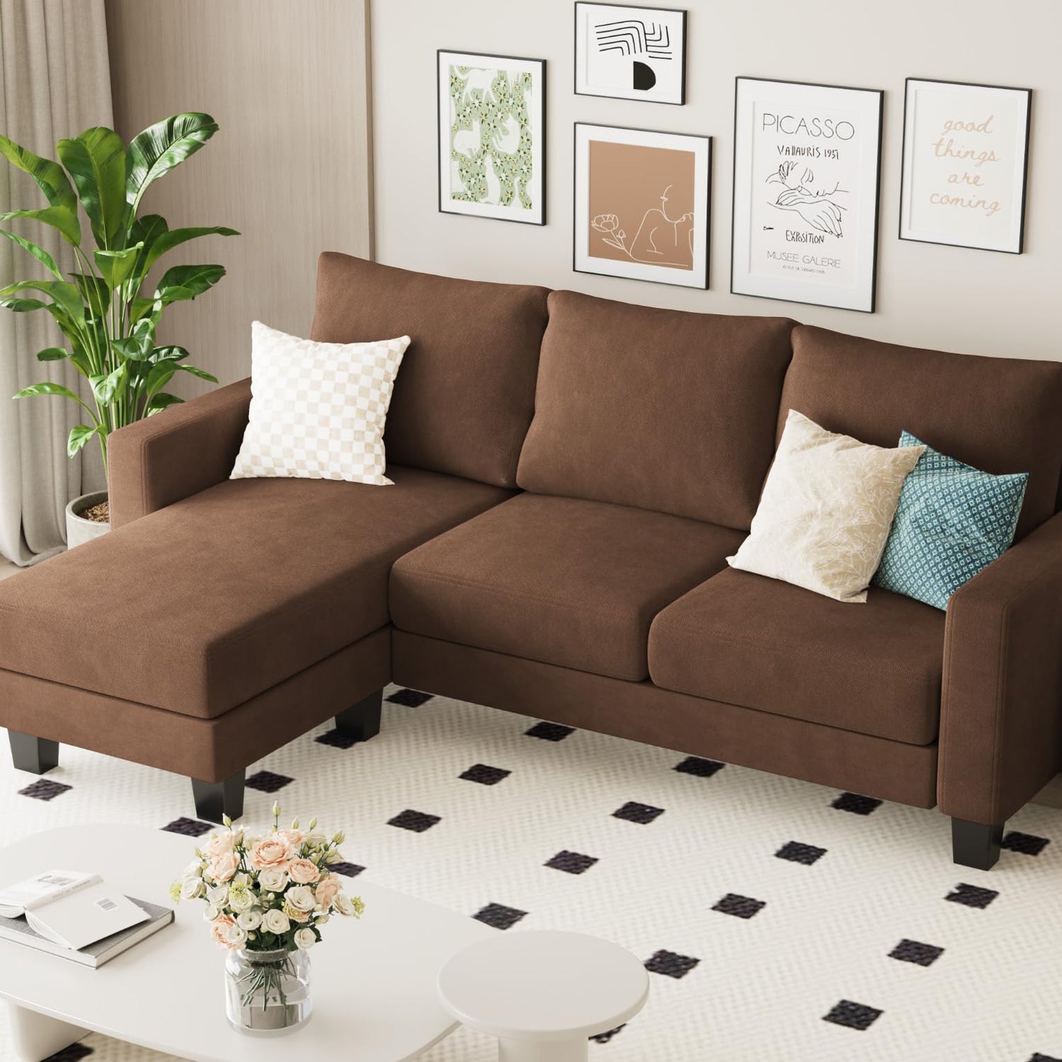 Homall Sofa for Living Room, Couch with Convertible Chaise, 3 Seat L-Shaped Sofas, Comfy Fabric Couches for Apartment, Small Space, Elegant Brown