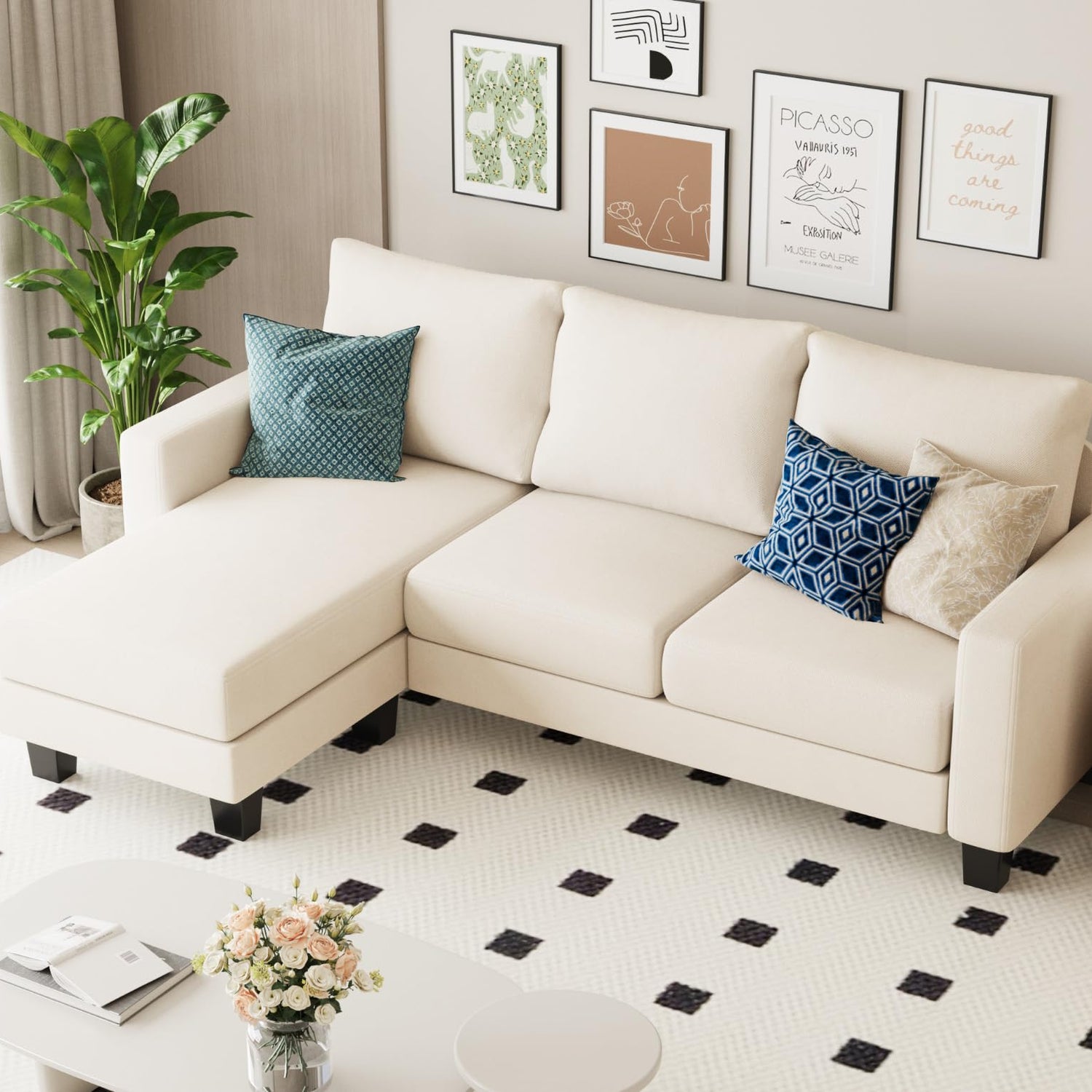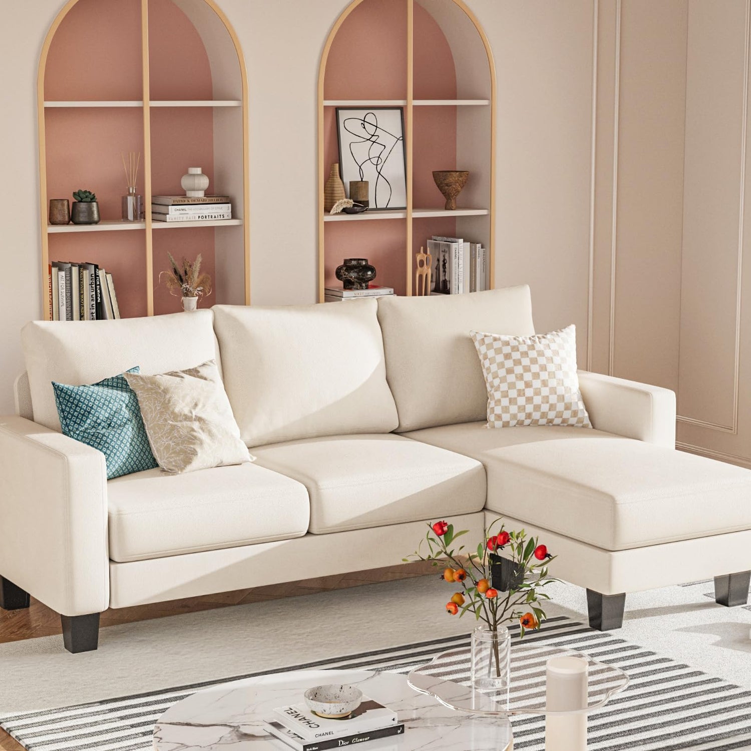 Homall Sofa for Living Room, Couch with Convertible Chaise, 3 Seat L-Shaped Sofas, Comfy Fabric Couches for Apartment, Small Space, White