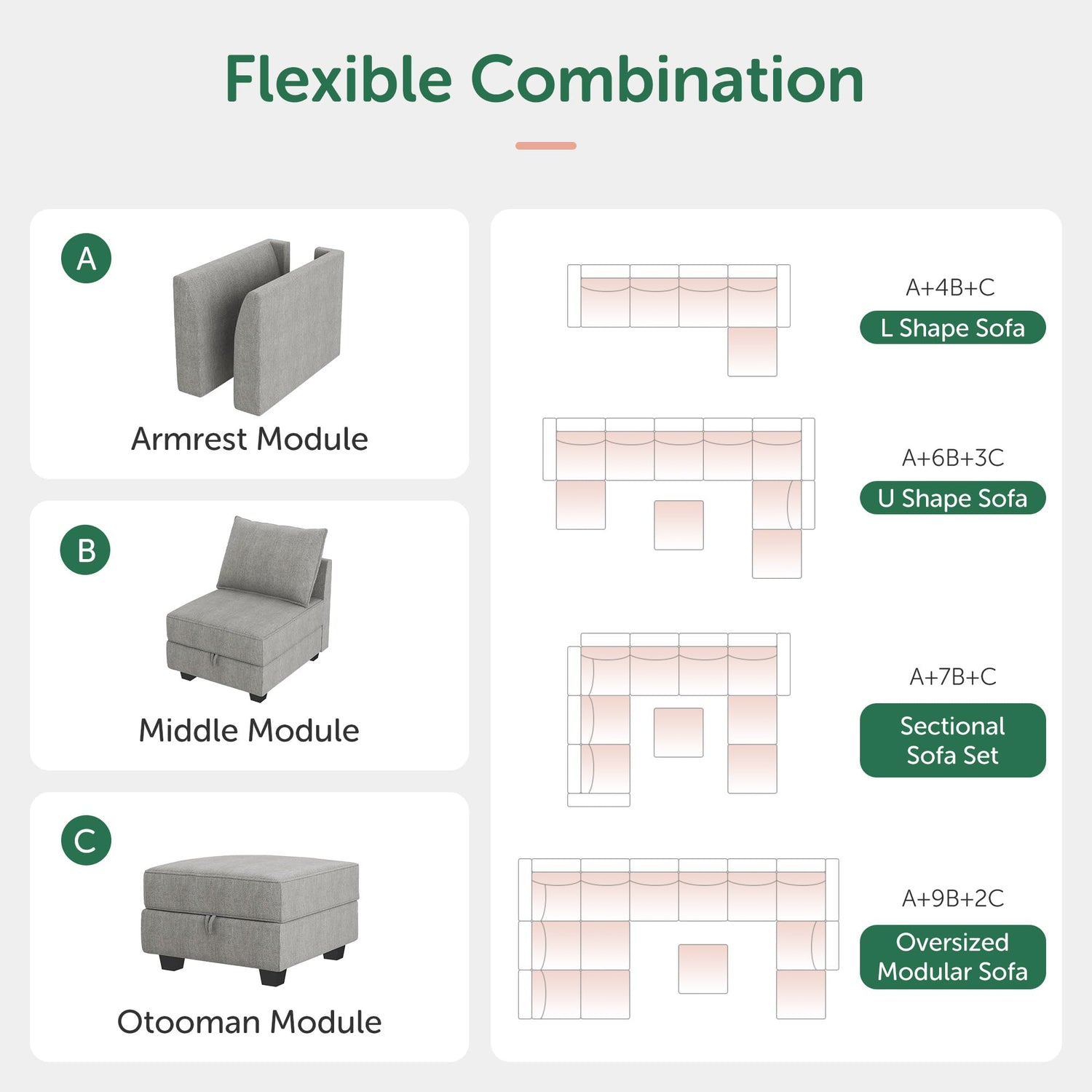 - MODULAR COUCH: Not just a U-shaped sofa, the every seat can be moved and re-matched. For convenience and need you also can move and assemble any module, this is the charm of the modular sectional sofa