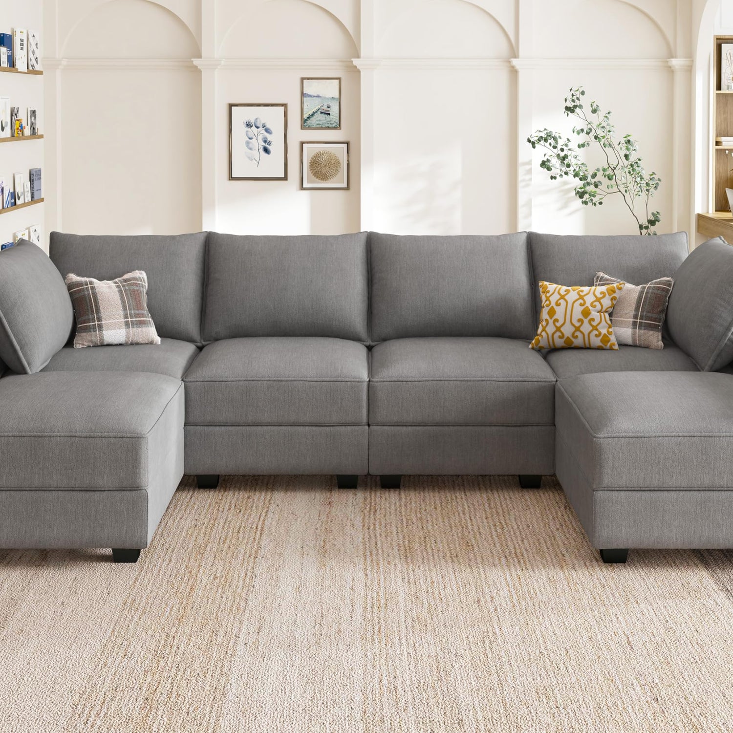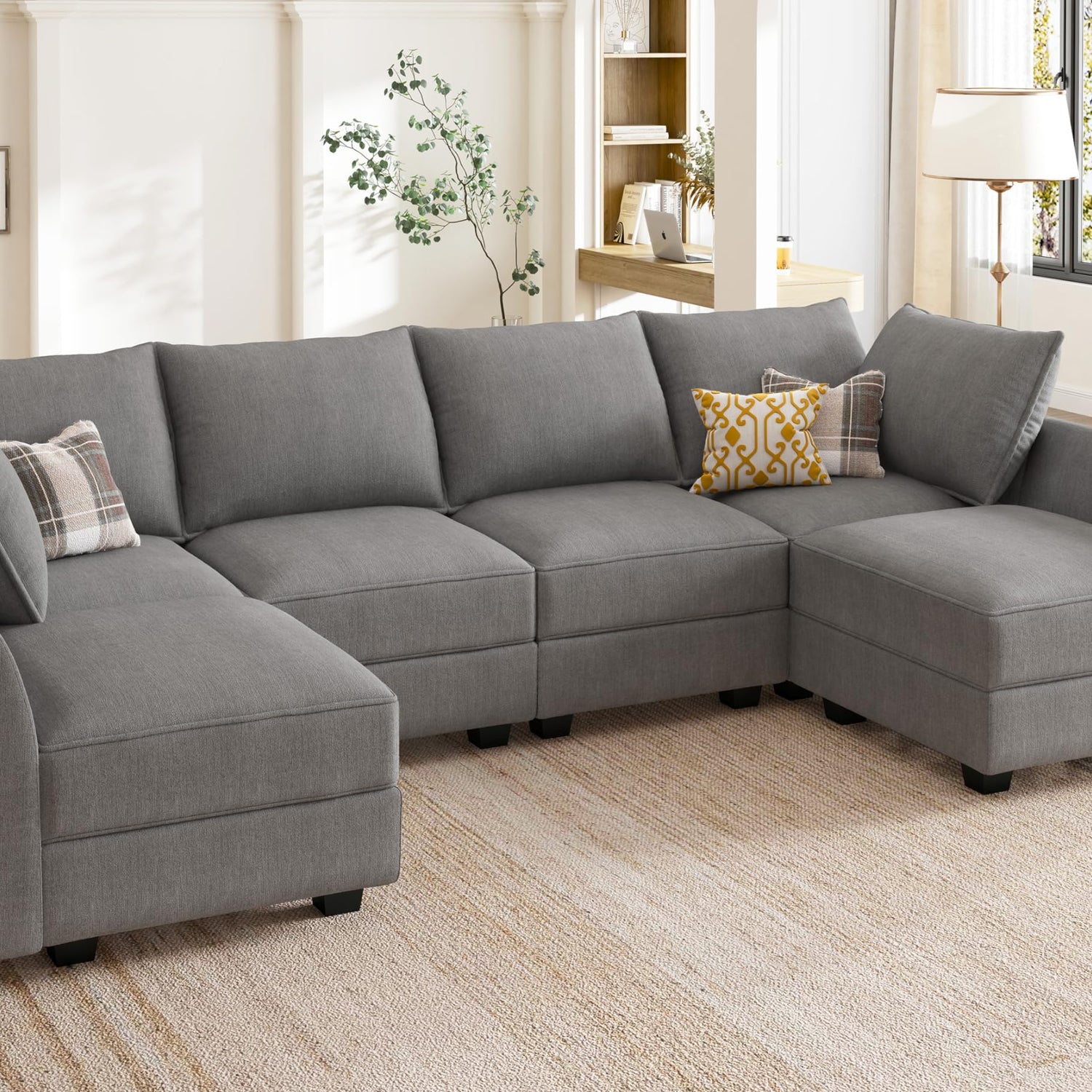 HONBAY Modular Sectional Sofa U Shaped Sectional Modular Sofa with Storage Convertible Modular Sectional Couch for Living Room, Grey