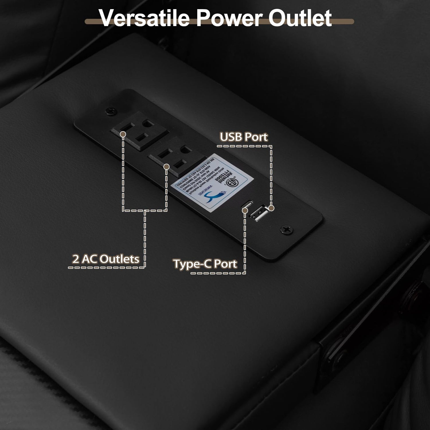 • Versatile Center Console: A console that meets all your needs. You can connect Bluetooth speakers to play your favorite music; sockets and USB ports support charging your phone or computer; two cup holders allow you to enjoy drinks while watching TV or relaxing; a small desktop provides a temporary work environment; drawers can be used to store items; and the backrest can be flipped up to serve as an extra small seat!