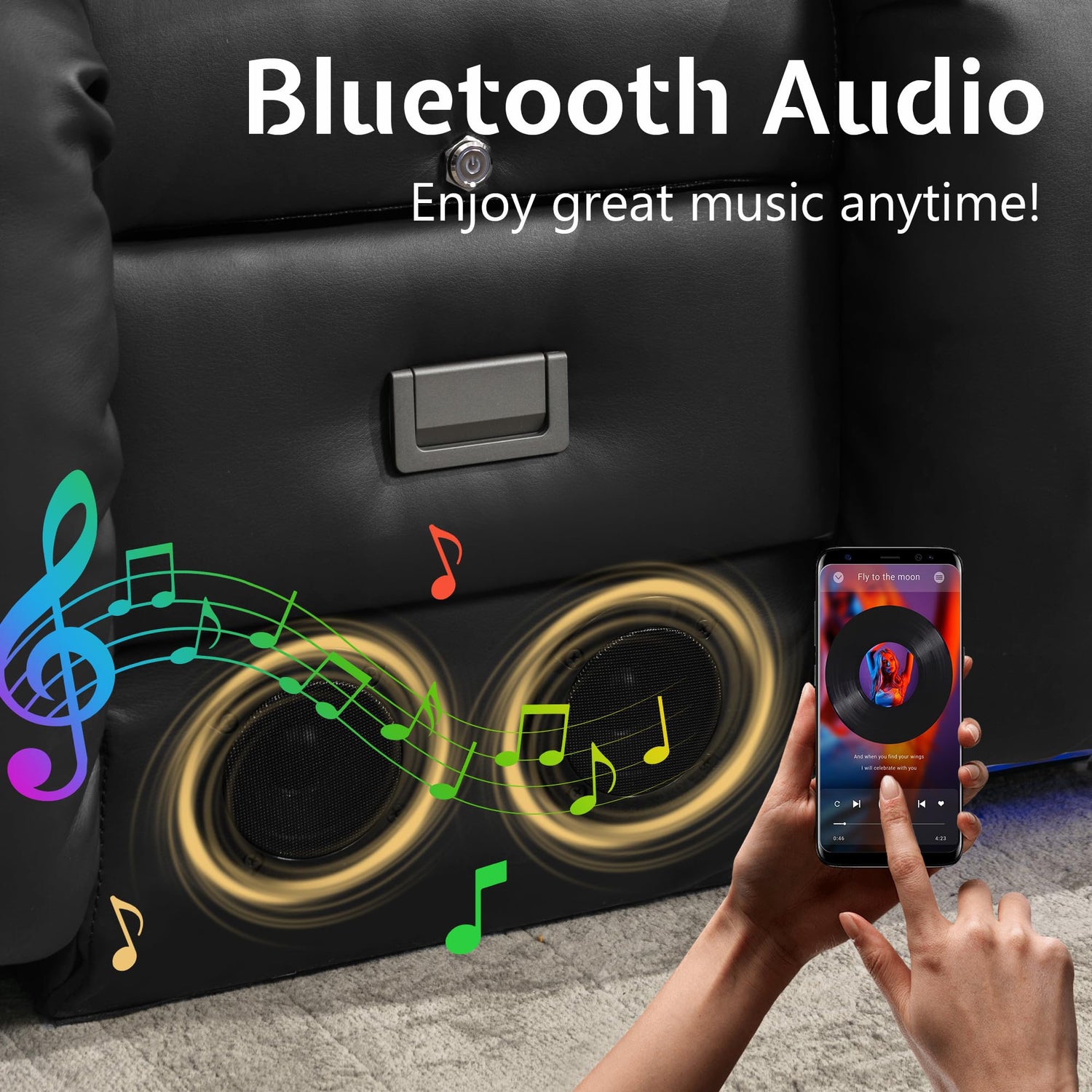 Houjud Power Loveseat Recliner Sofa with Console, RV Flip Middle Backrest Design 3 Seat Reclining Sofa Couch with Vibrating Massage and Heat, LED Light, USB, Bluetooth Speakers, Outlets, Black