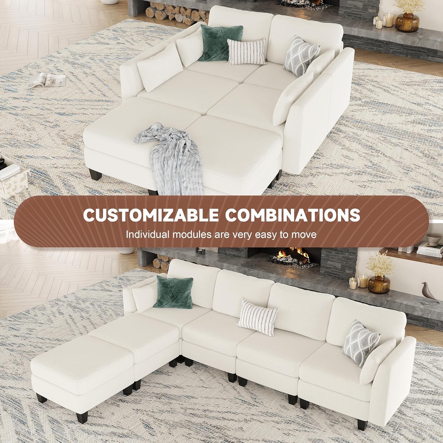 - Flexible Modular Couch: The Huatean Home modular sectional sofa features a modern design that allows for easy switching and flexible adjustments. It can be configured into an L-shaped sofa, U-shaped sofa, sofa bed, and other stylish combinations