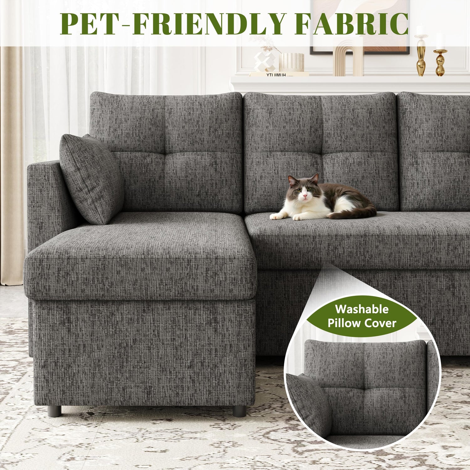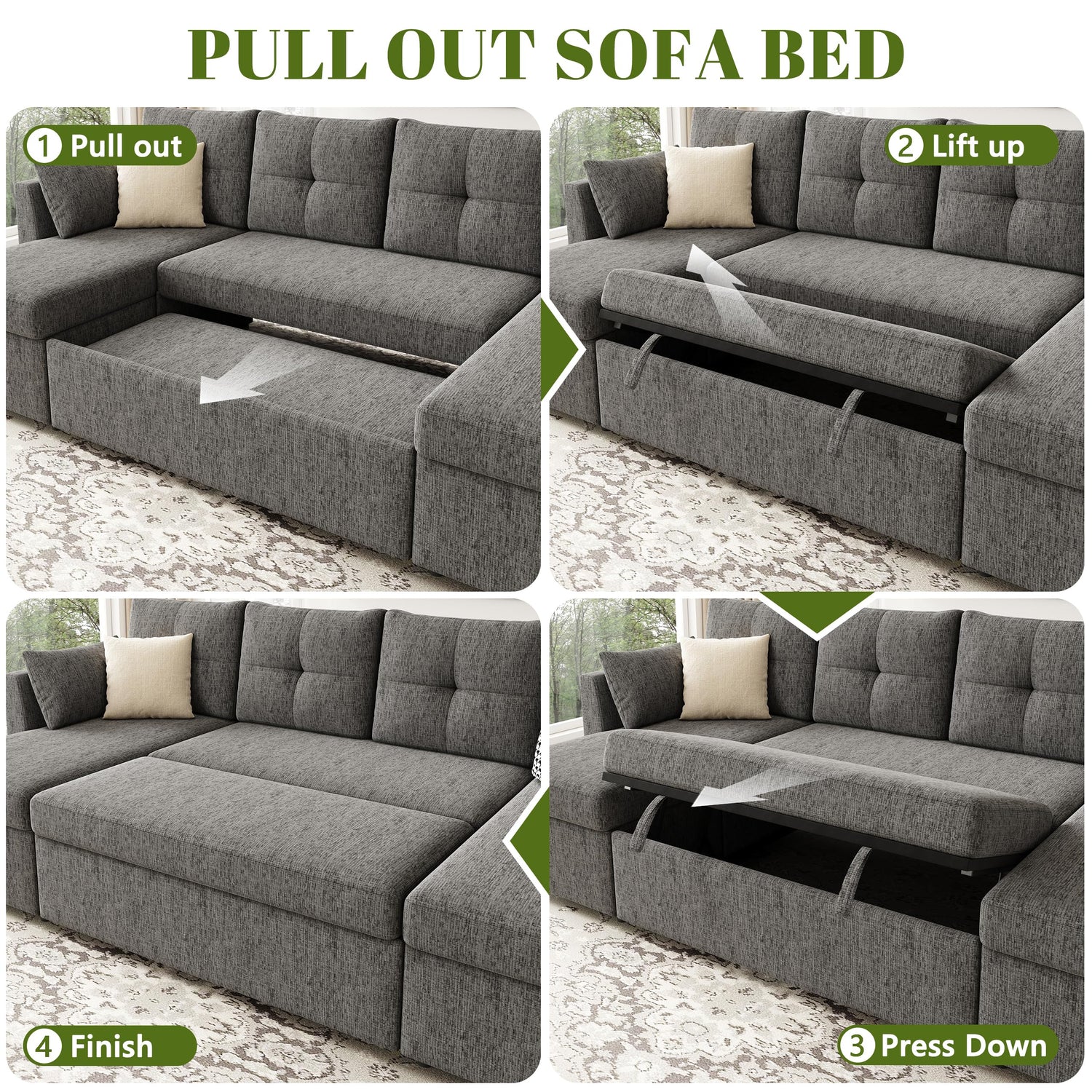 • COMFORTABLE AND BREATHABLE: Enjoy a plush sitting and lounging experience with comfortable cushions and breathable, anti-pilling fabric, ensuring a long-lasting fresh look of our sectional pull out couch