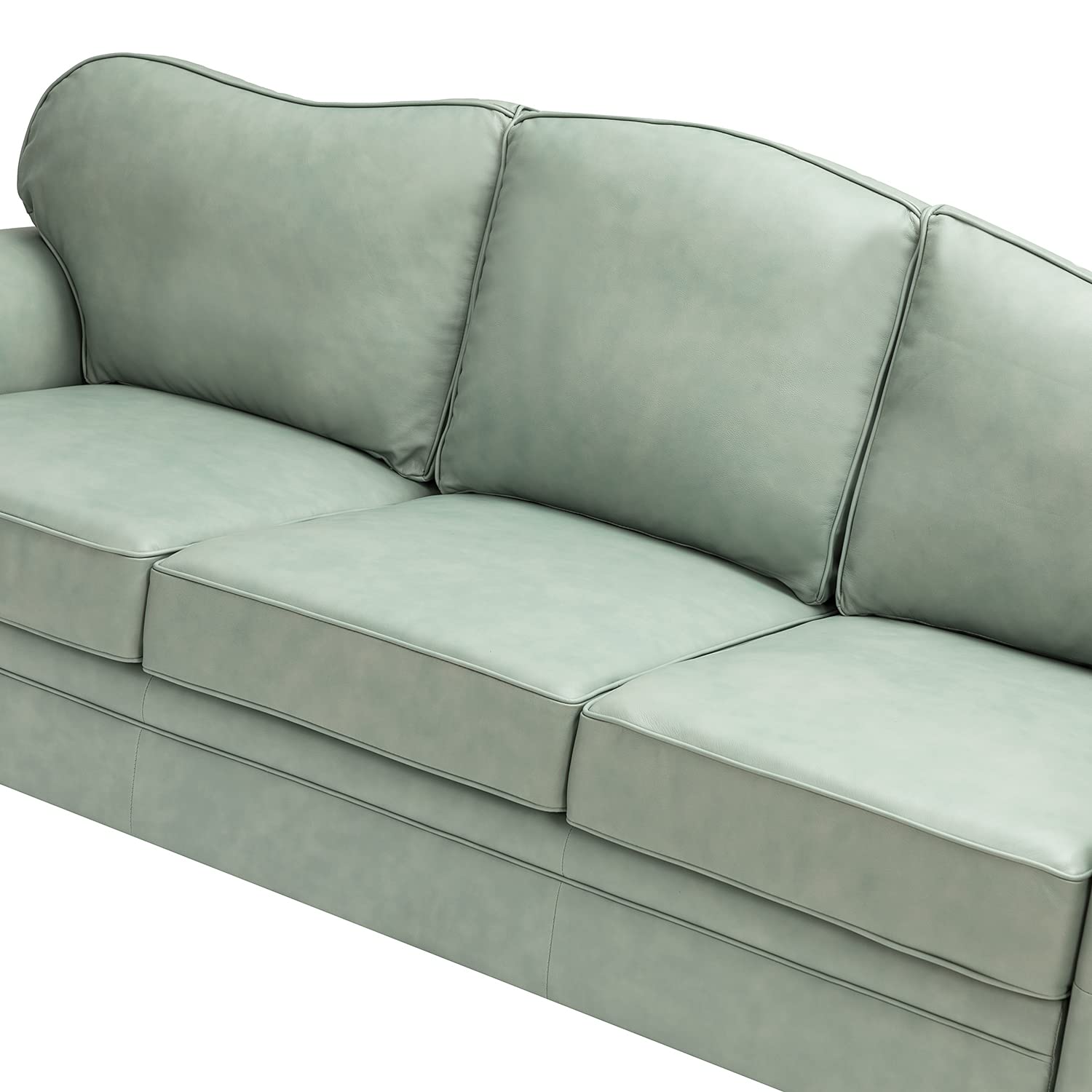 HULALA Home 81'' Upholstered Leather Sofa with Nailhead Trim and Rolled Armrests, Mid-Century Modern Living Room 3-Seater Couch, Sage Couch with Removable Cushion for Bedroom Apartment