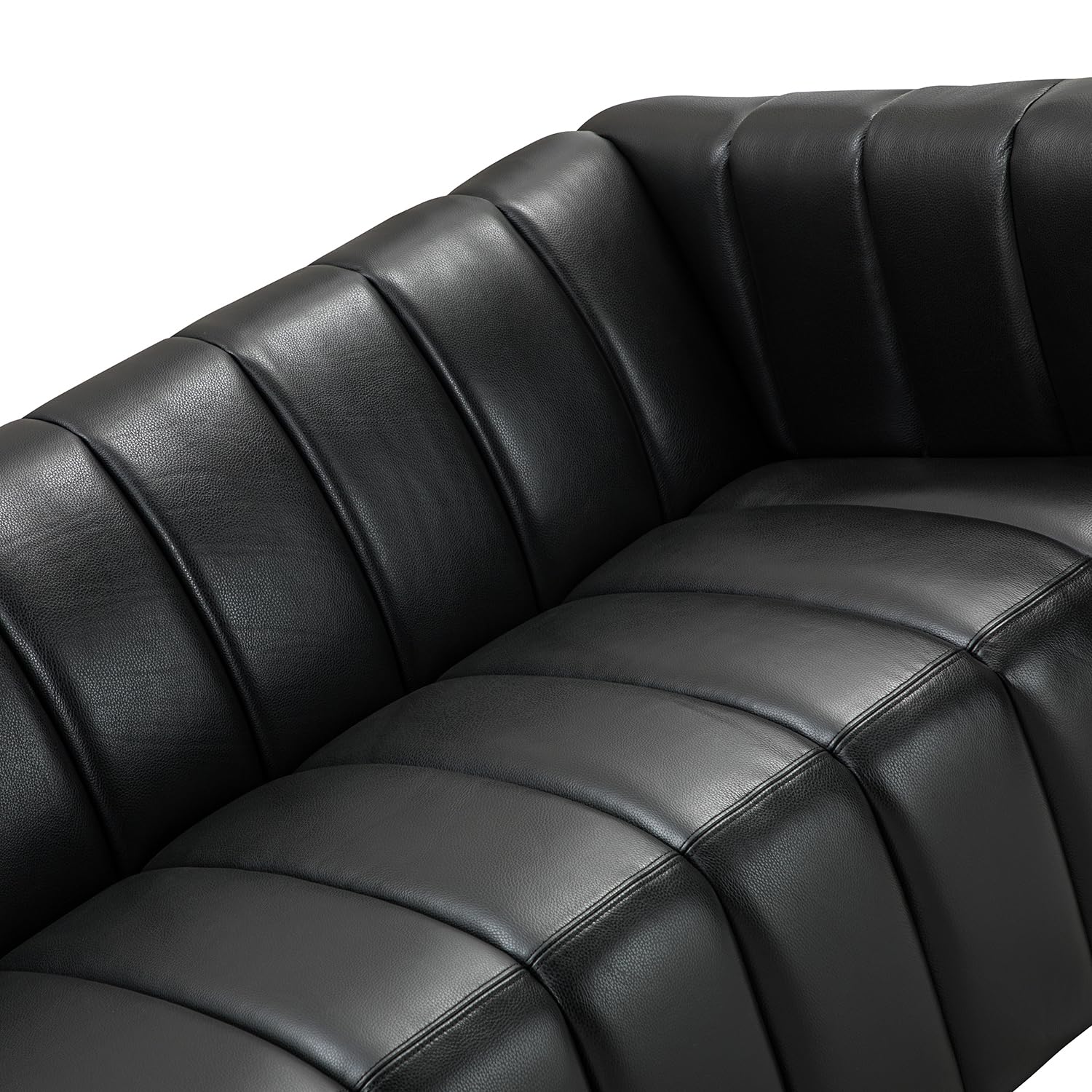 HULALA HOME 83" Genuine Leather Sofa with Channel Tufted Design, 3-Seater Sofa for Living Room Bedroom, Modern Oversized Couch with Wood Legs, Black