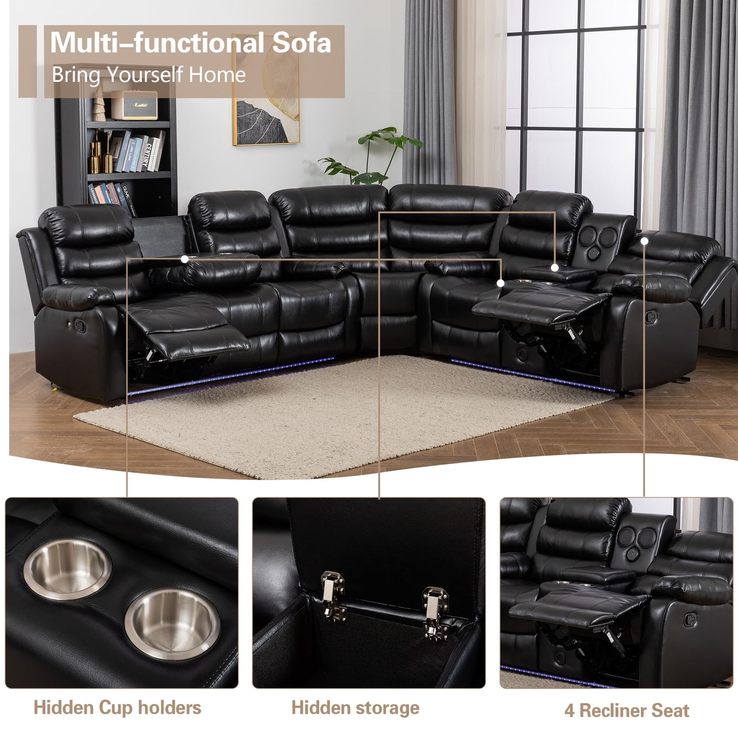 - MULTI-FUNCTIONAL DESIGN: Features reclining seats, built-in Bluetooth speakers with bass, LED light strips, and hidden storage compartments