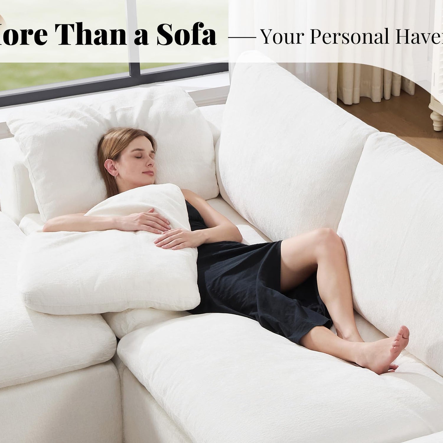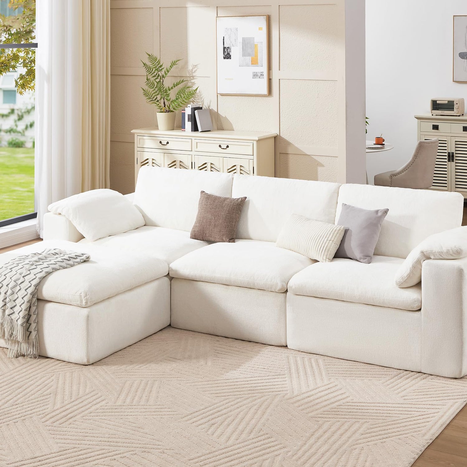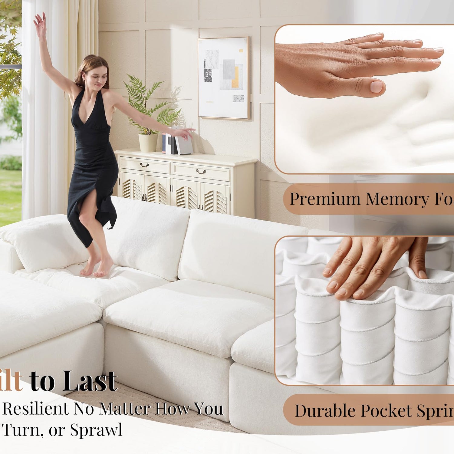 Jocisland 130 inch Cloud Couch Sectional, No-Assembly Modular Sectional Sofa with 83.5 inch Deep Chaise, Oversize Cloud Couch for Living Room, White Chenille