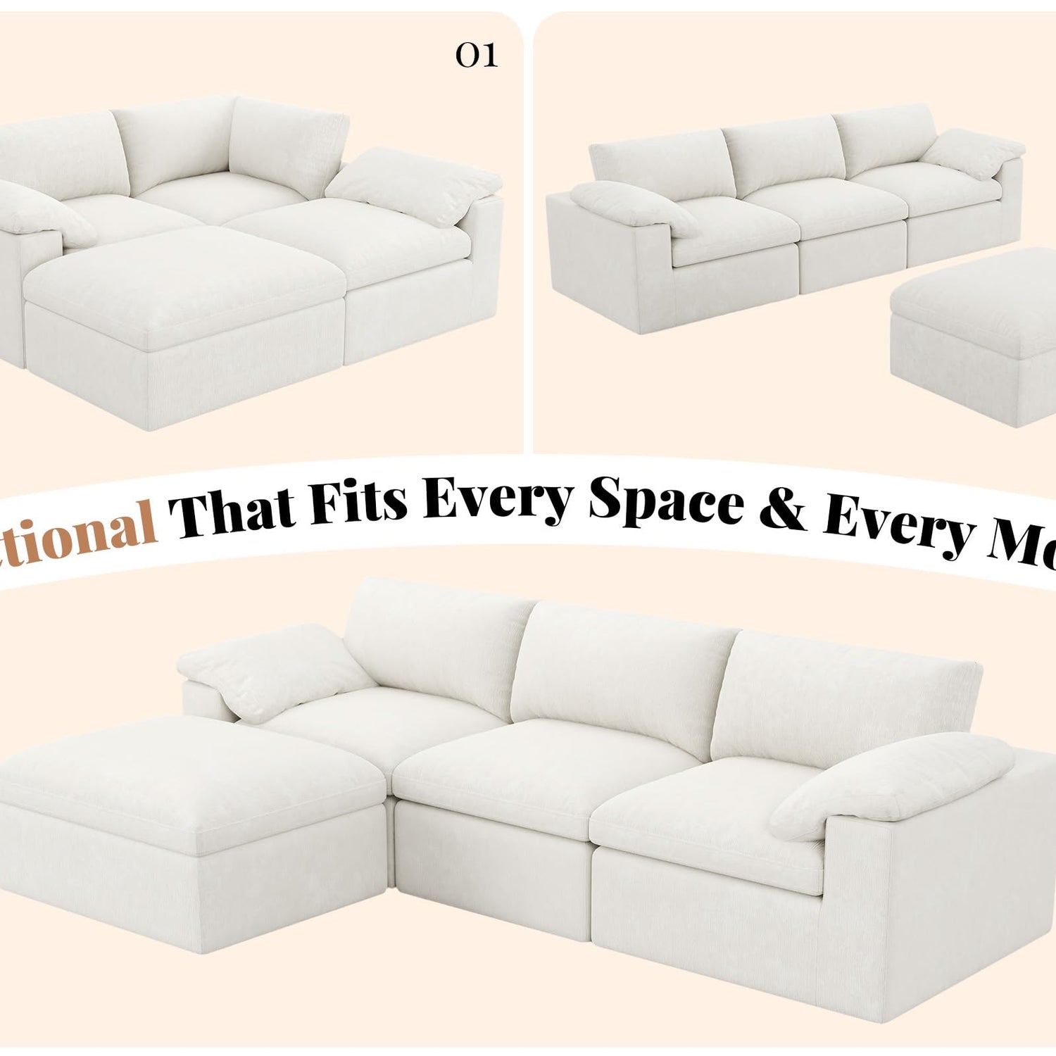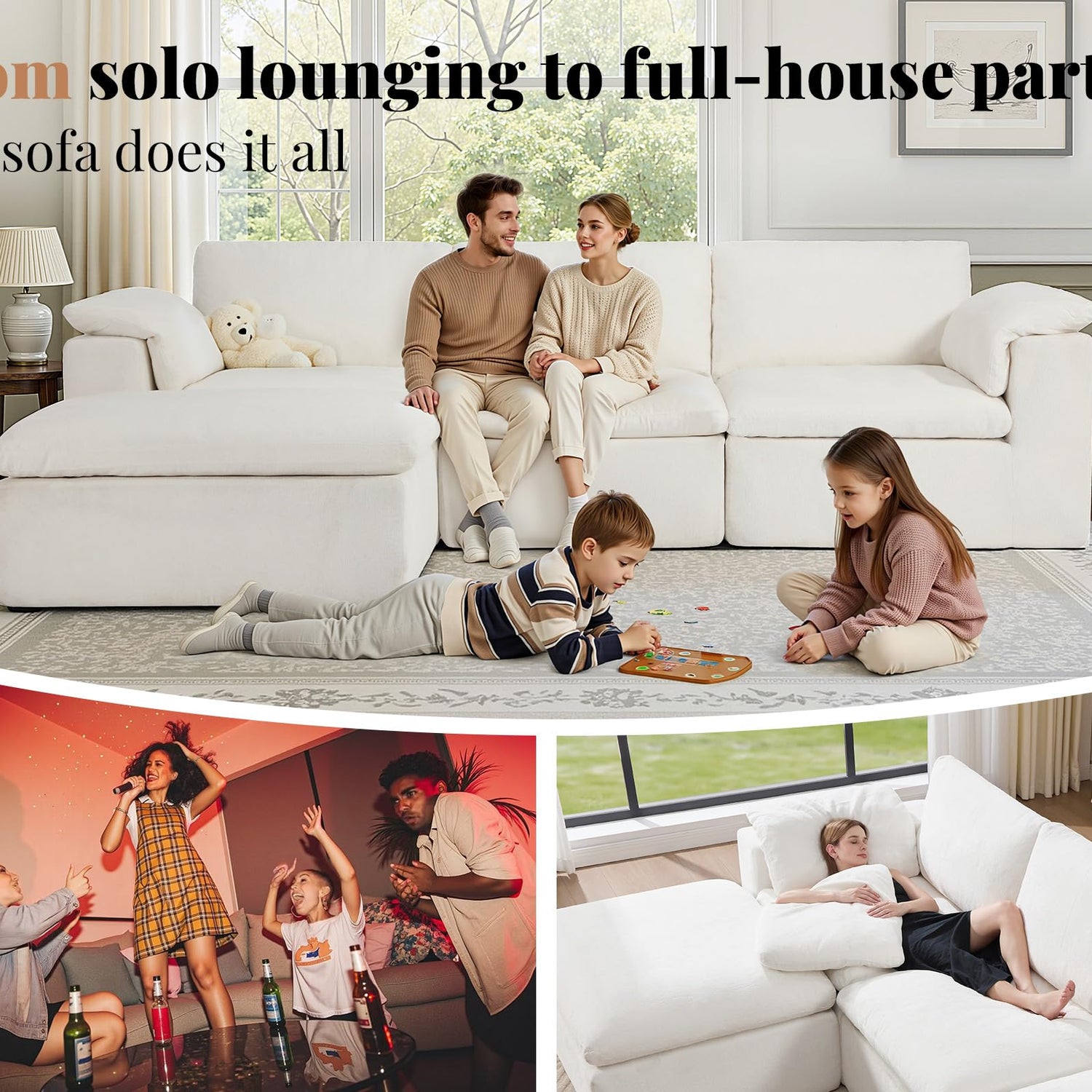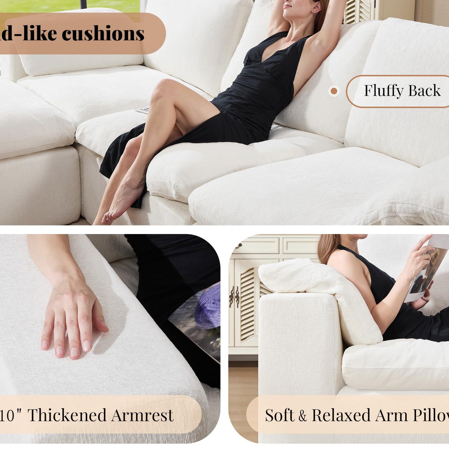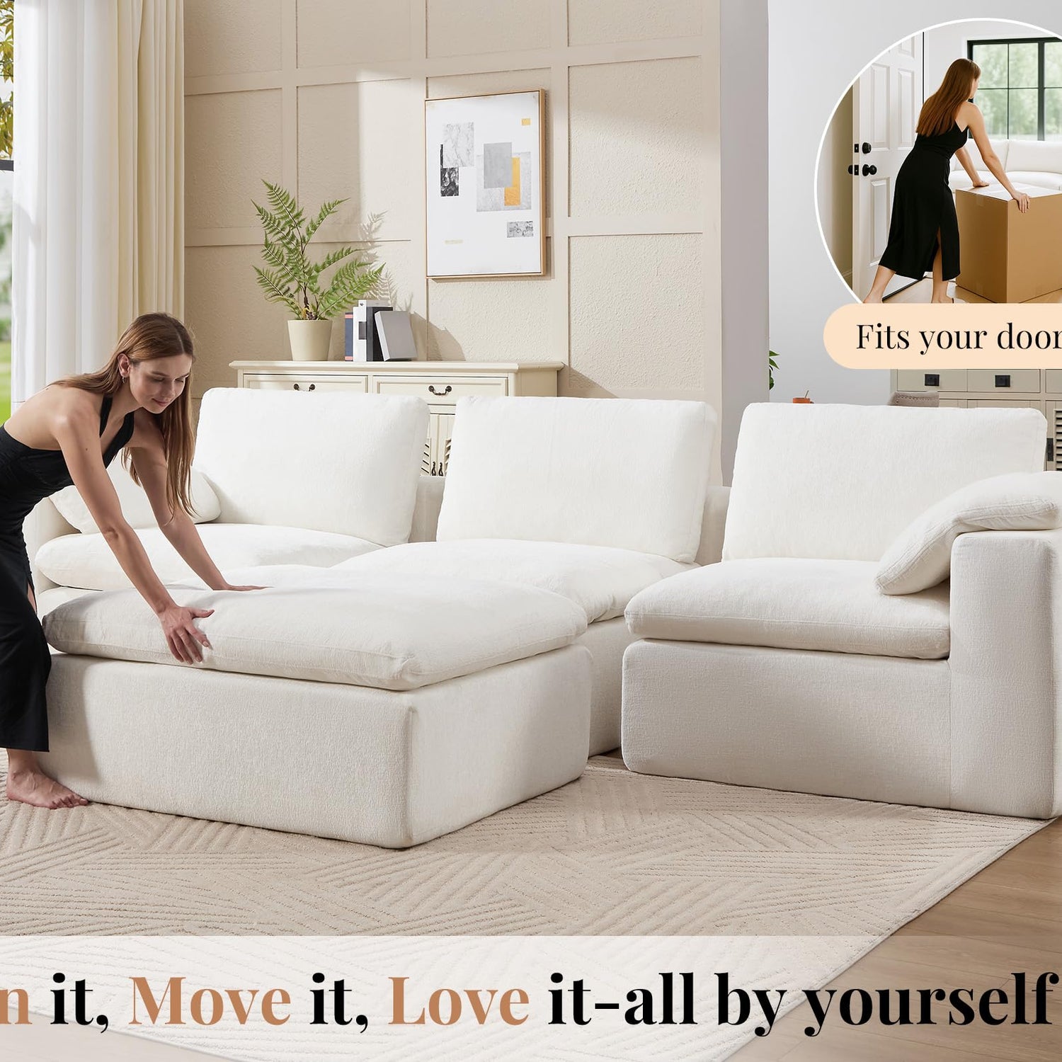 Jocisland 130 inch Cloud Couch Sectional, No-Assembly Modular Sectional Sofa with 83.5 inch Deep Chaise, Oversize Cloud Couch for Living Room, White Chenille