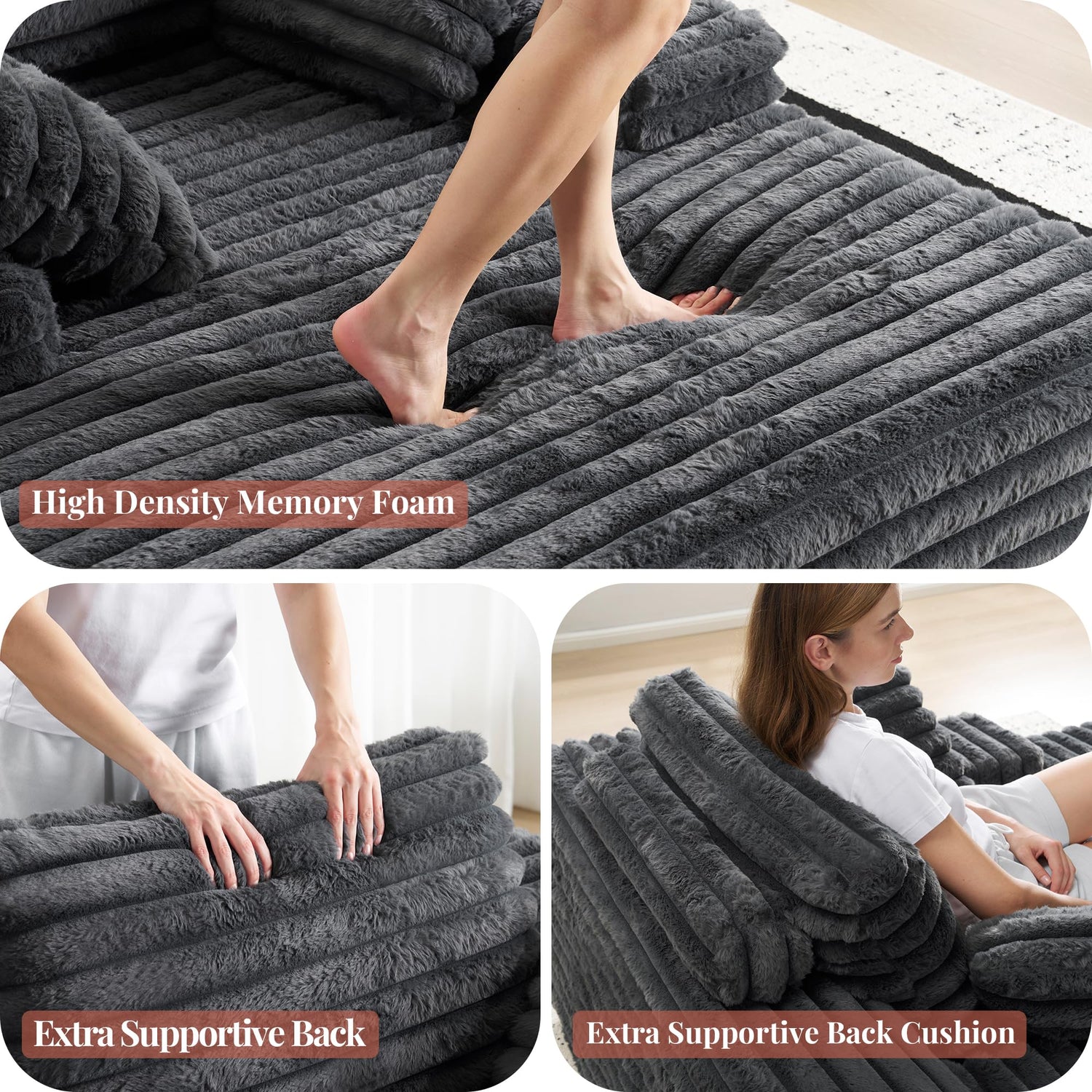 Jocisland 67 inch Chaise Lounge, No-Assembly Sofa Chaise with Throw Pillows and Armrests, Faux Fur Sleeper Sofa for Living Room, Apartments, Gray