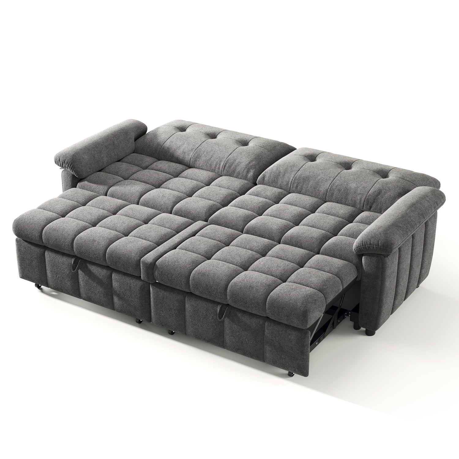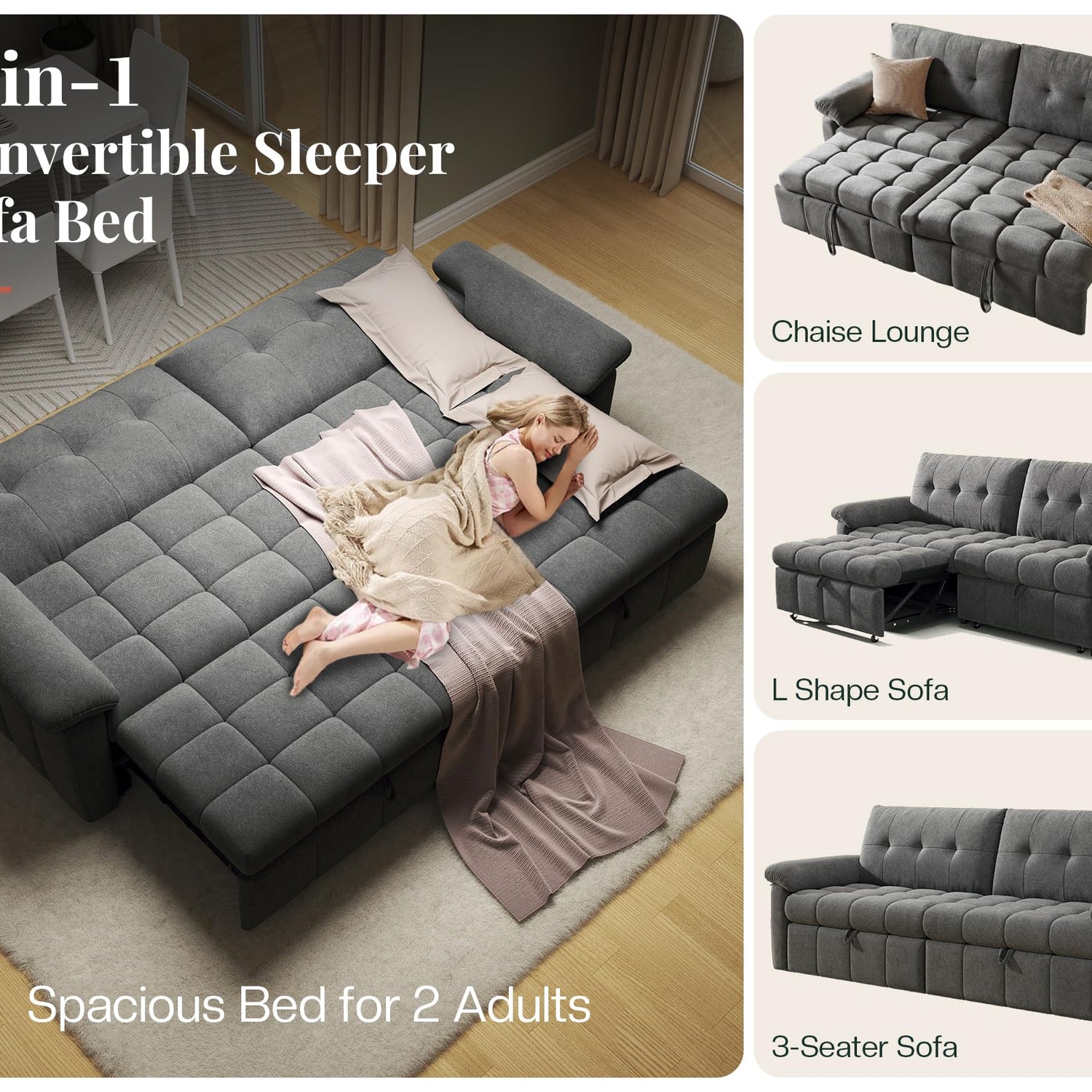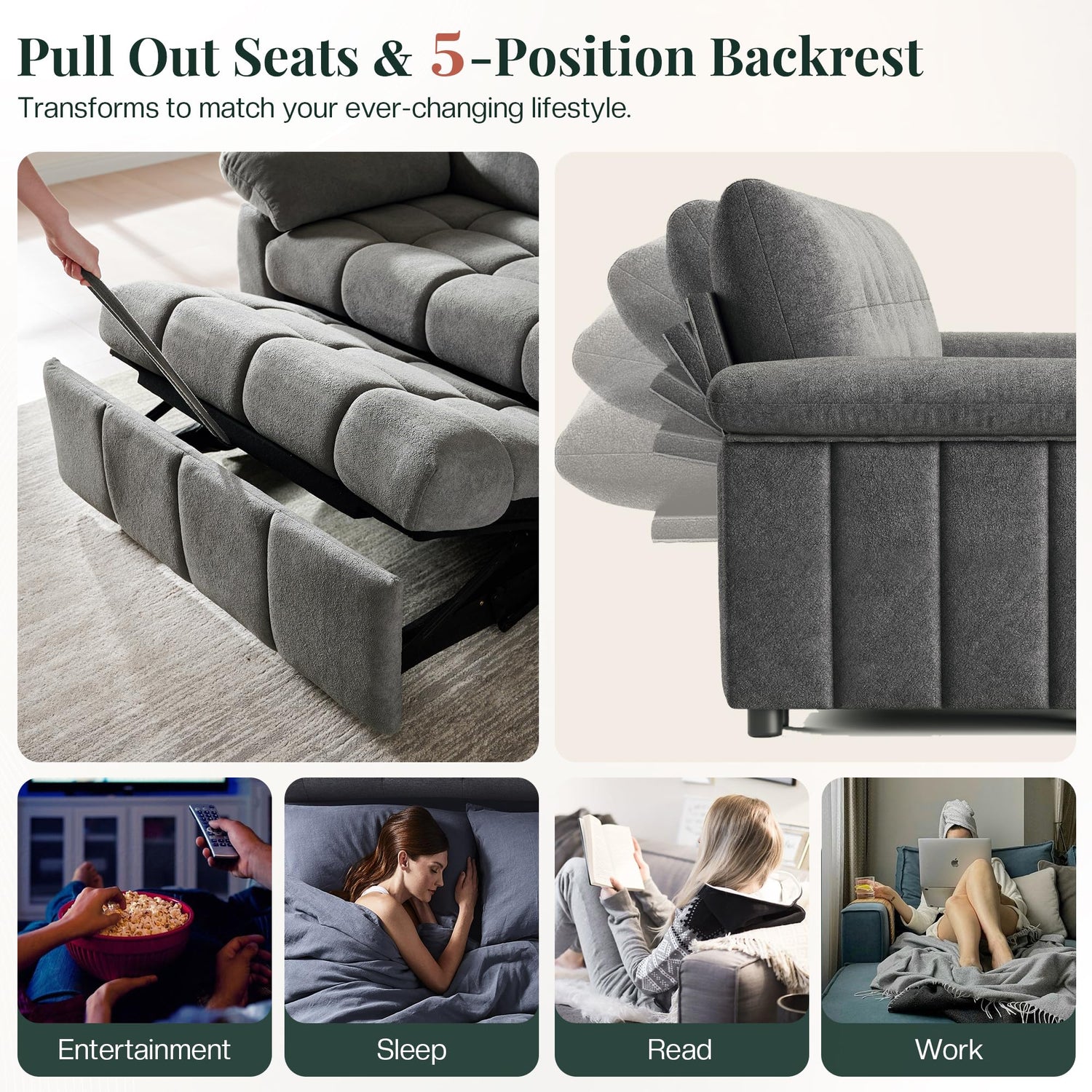 Jocisland 93” Convertible Sofa Bed with Pull-Out Sleeper, 4-in-1 Couch with 5-Position Backrest, Tufted Chenille, Easy 10-Min Assembly, Modern Couch for Living Room & Guests – Gray