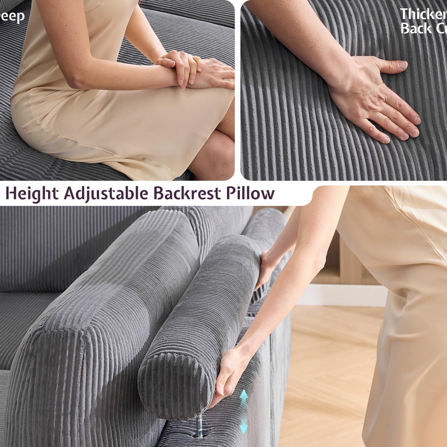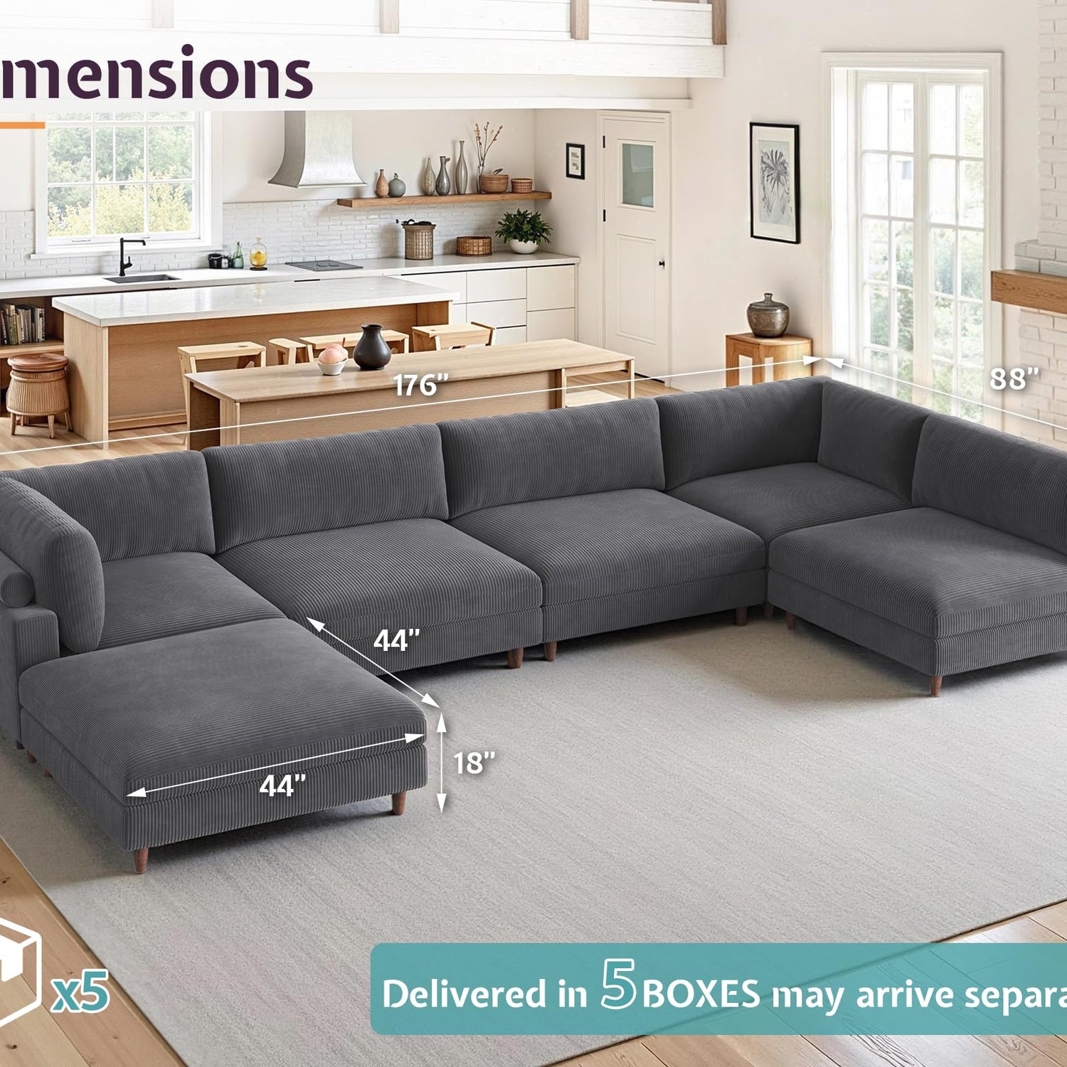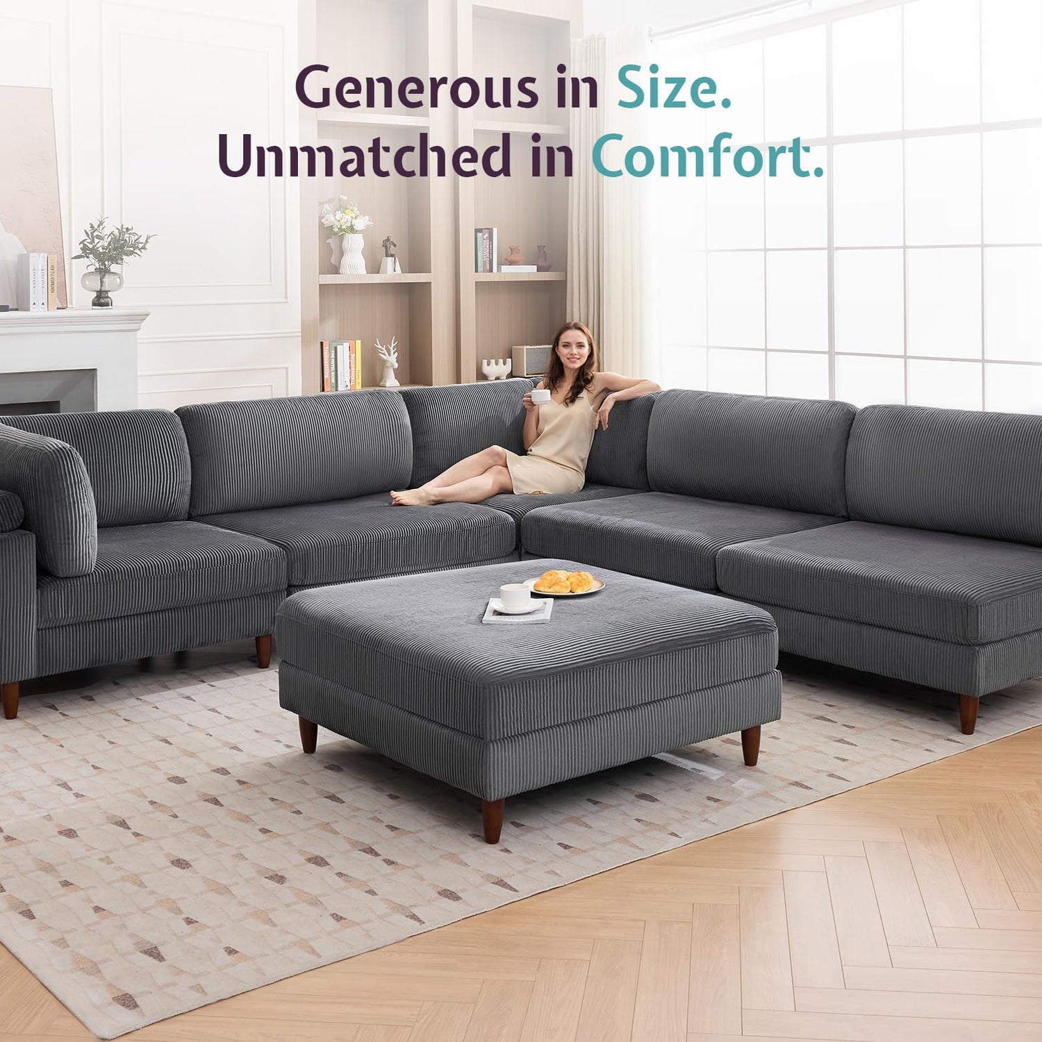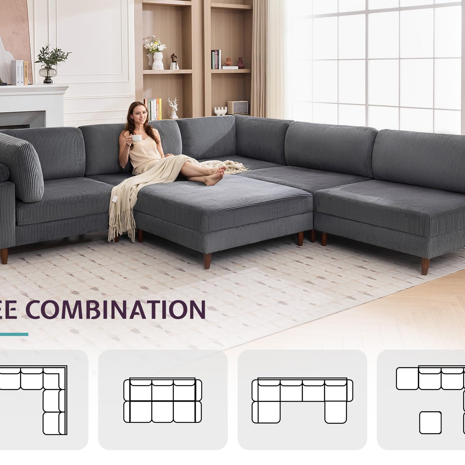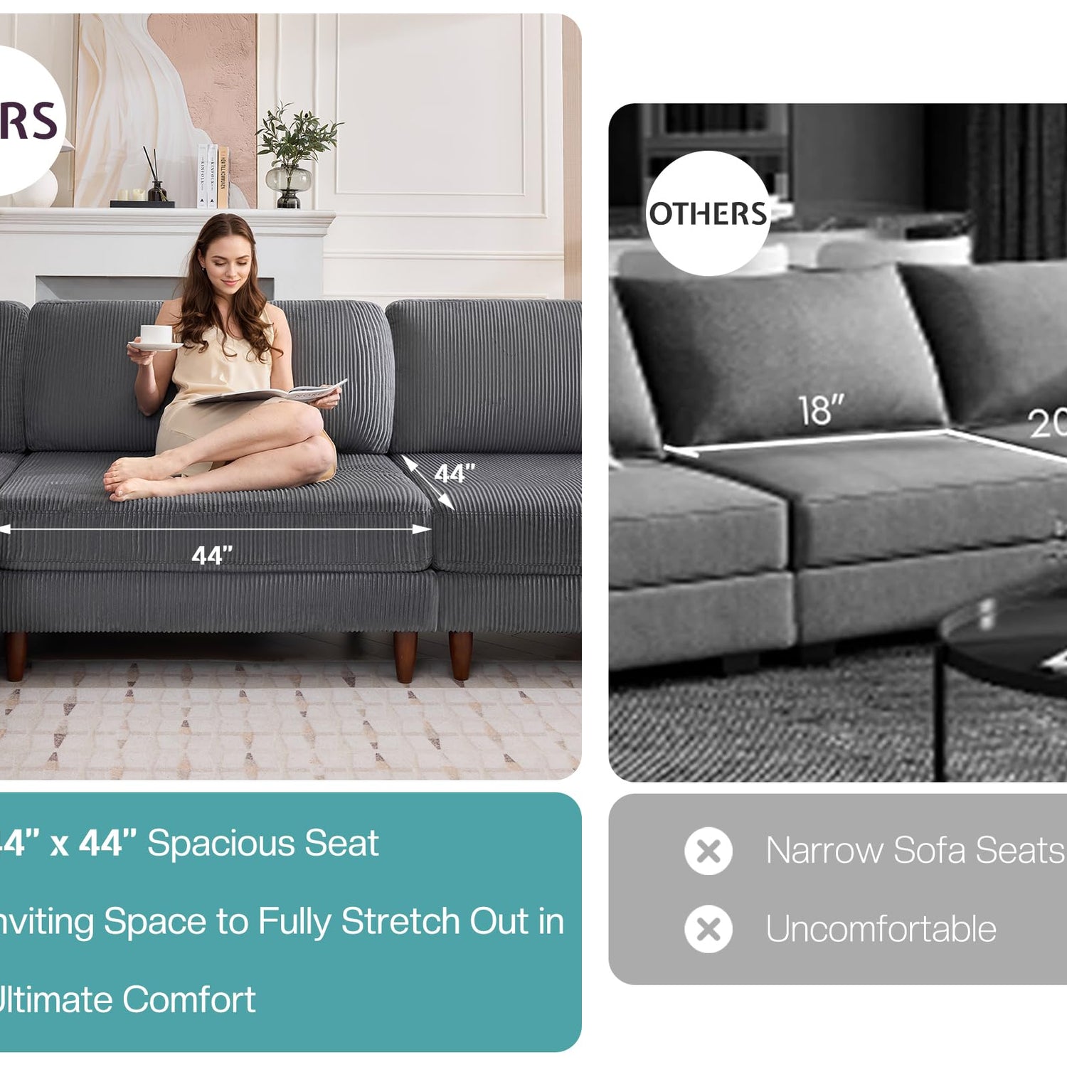 Jocisland Modular Sectional Sofa, 44" Deep Seat Modular Sofa, Oversized 6-Seater Sectional Couch for Plus-Size & Big Families, Grey Corduroy Living Room Couch, Easy Assembly