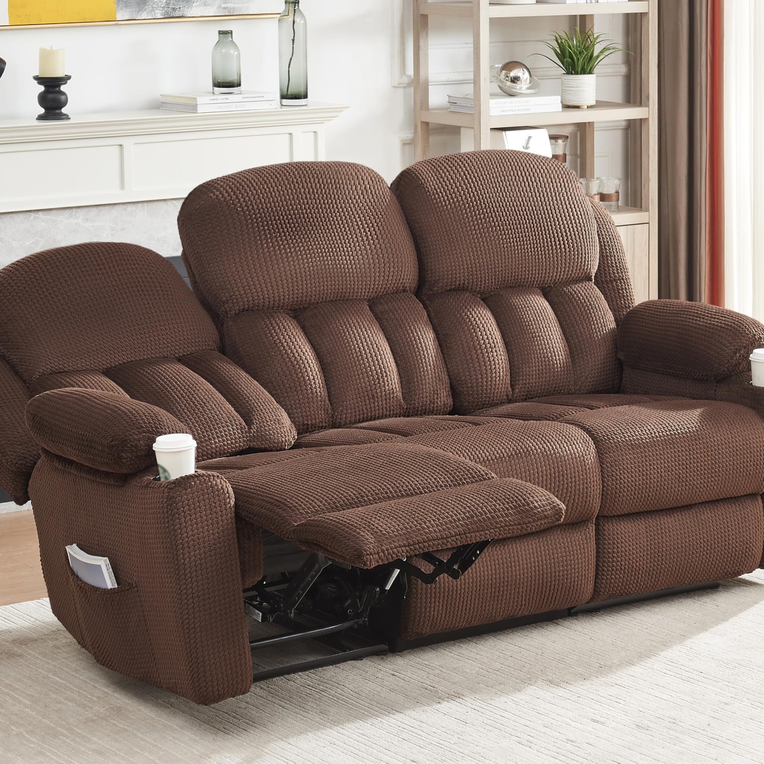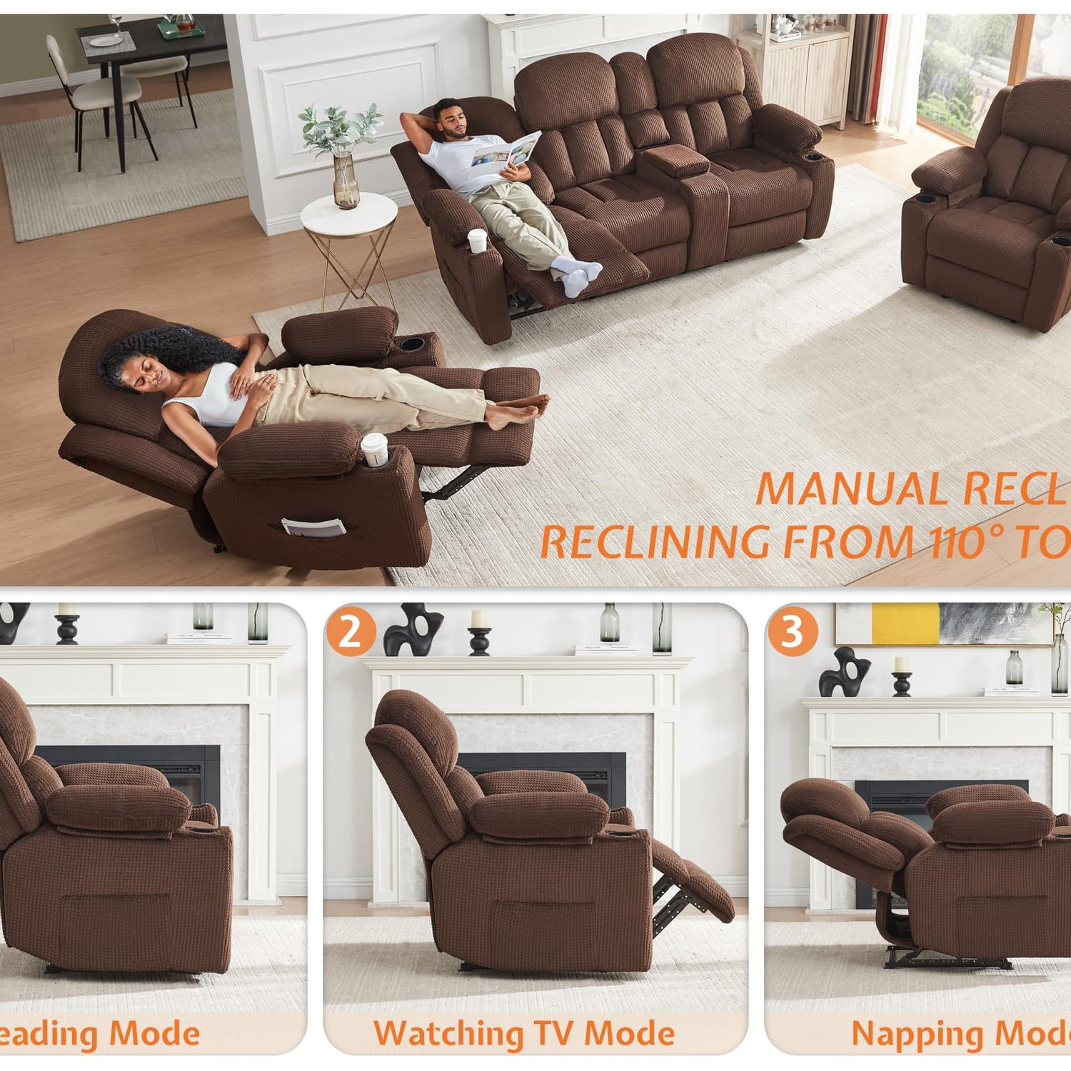 Jocisland Recliner Couch, Reclining Sofa with Cup Holders, 3 Seater Reclining Couch with Dual Wingback, Comfy Recliner Sofas for Living Room(Brown)