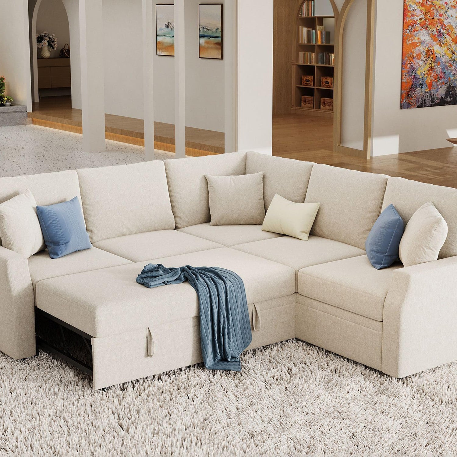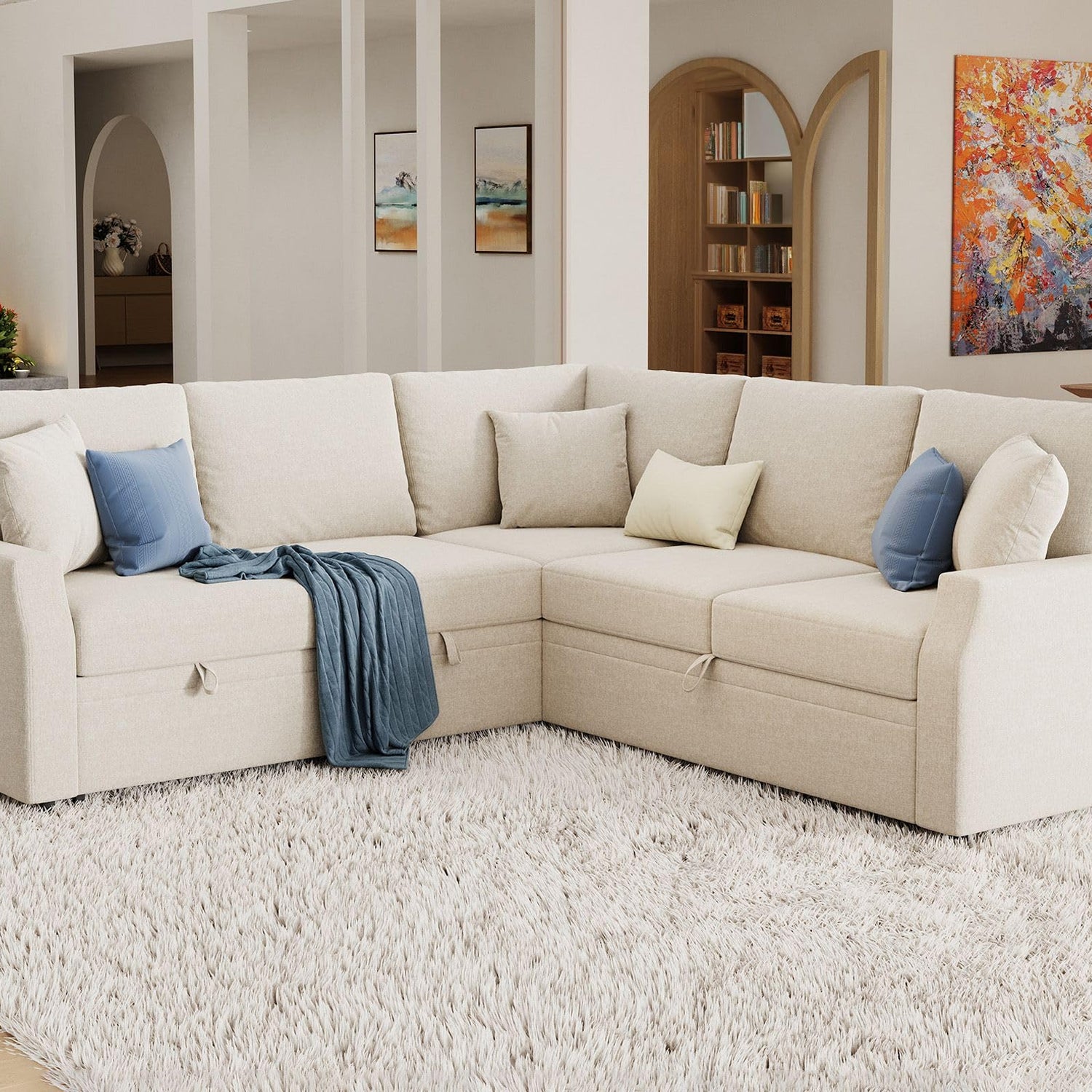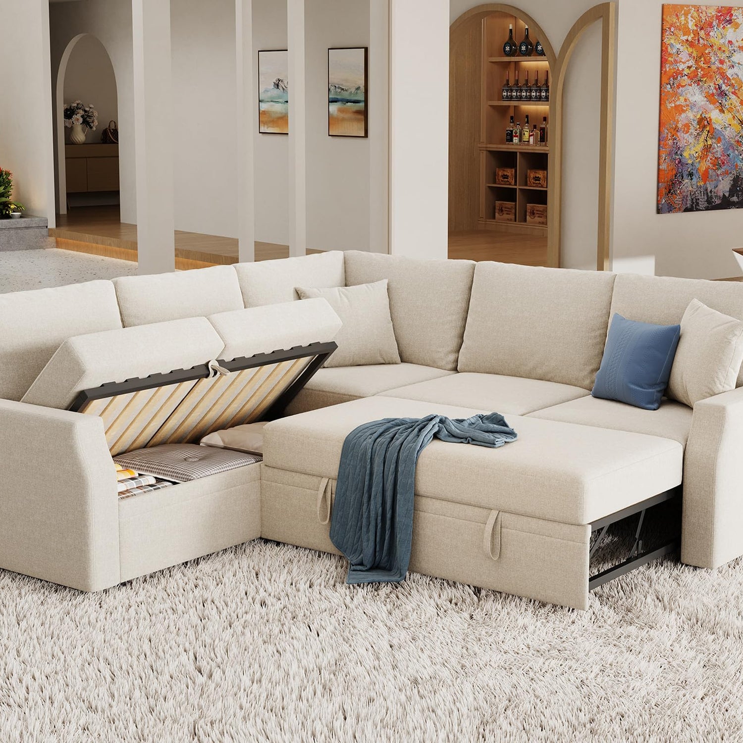 Jocisland Sofa Bed, 85 Inch Sleeper Sofa with Pull Out Bed & Storage Seat, Reversible L Shape Sectional Couch for Living Room Apartment, Beige Linen Oversized Sofa