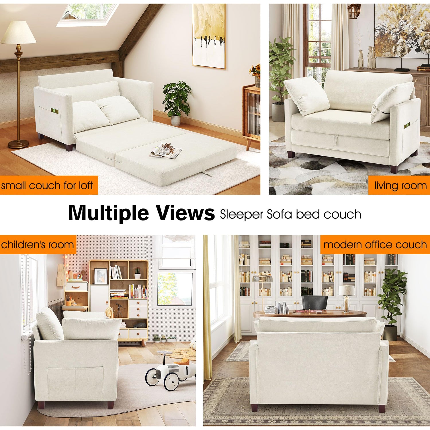 - 【Comfortable & Sturdy】Made with high-density foam and breathable chenille fabric, this loveseat sleeper sofa bed offers great comfort for sitting or sleeping. The sturdy frame and solid legs support up to 600 lbs, ensuring lasting quality for everyday use.