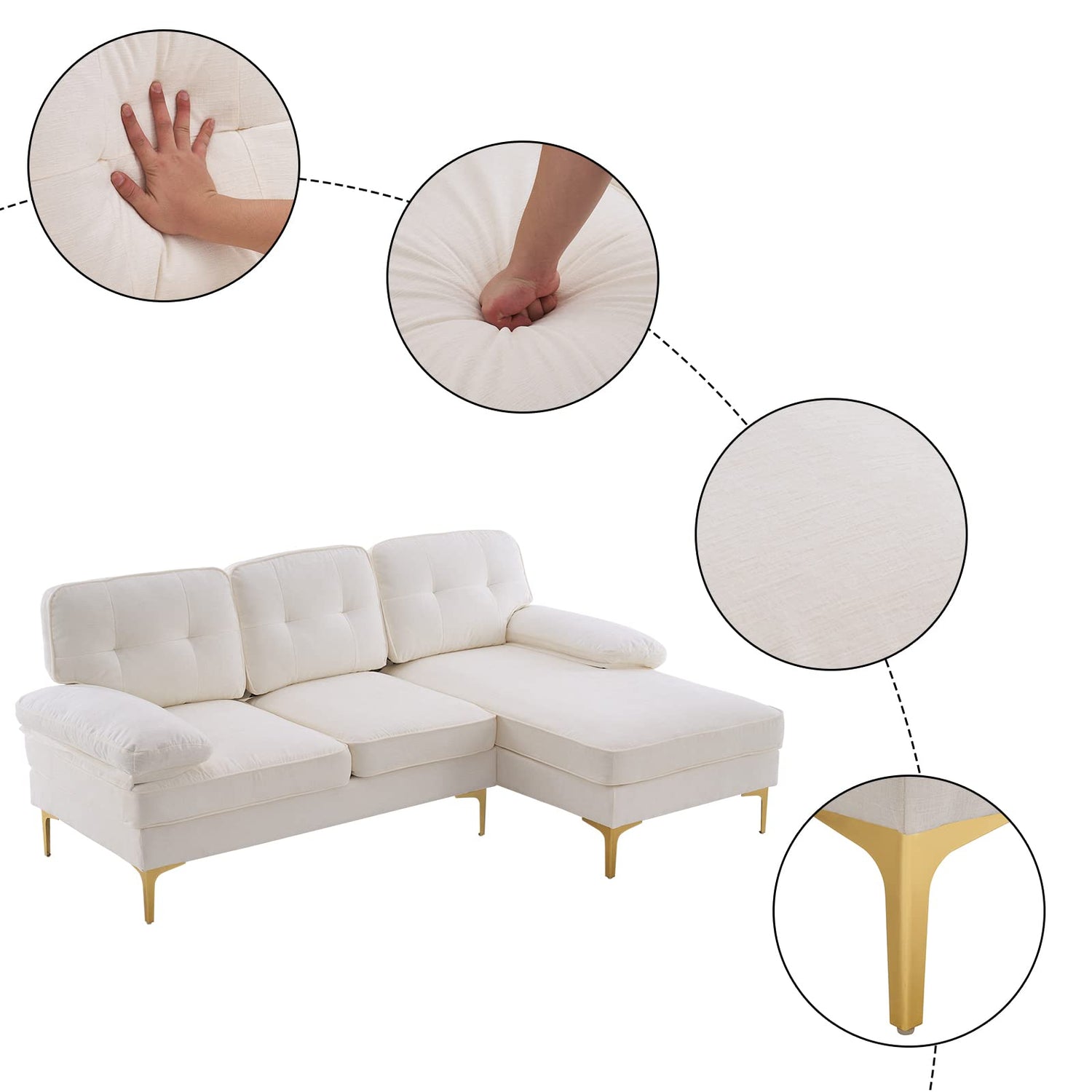 • SOLID CONSTRUCTURE - Firmly structured with solid wood interior frame, together with sturdy metal legs provide ensured stability. Equipped with foot pads, the sofa will protect your floor from scratching and decrease the noise when slightly moving.