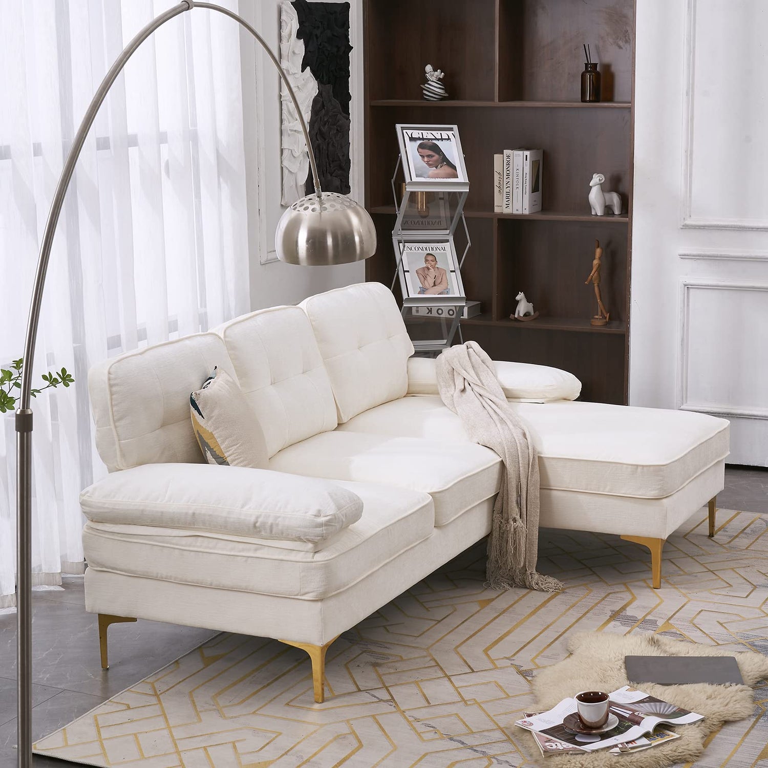 • FUNCTIONAL FURNITURE - Whether in living room, apartment, loft, or office, this convertible sofa with chaise is a perfect complement. You can fall on it after a long day at work, settle down with a cup of coffee, or have a talk with your family members or friends.