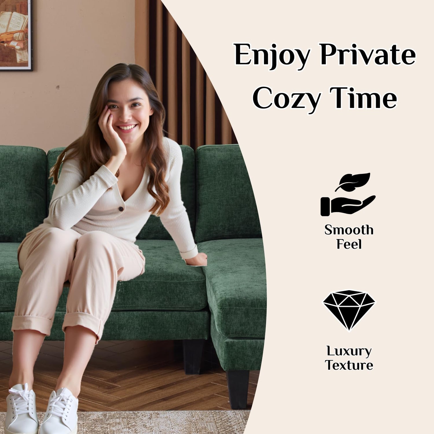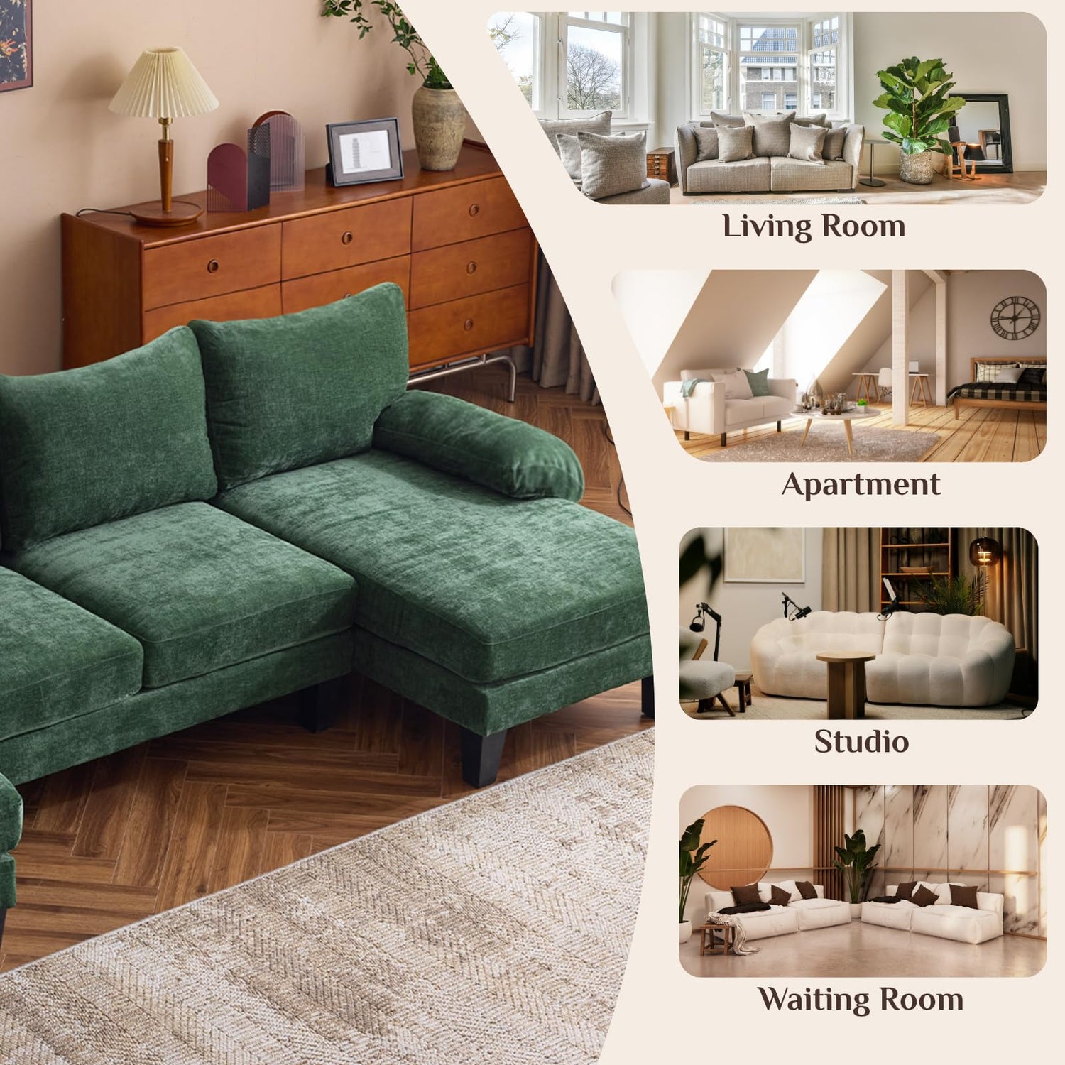 Karl home U-Shape Sectional Sofa Couch 111" Modern 4-Seat Sofa with Chaises Chenille Fabric Upholstered Covertible Couch with Wood Grain Legs for Living Room, Reception Room, Apartment, Green
