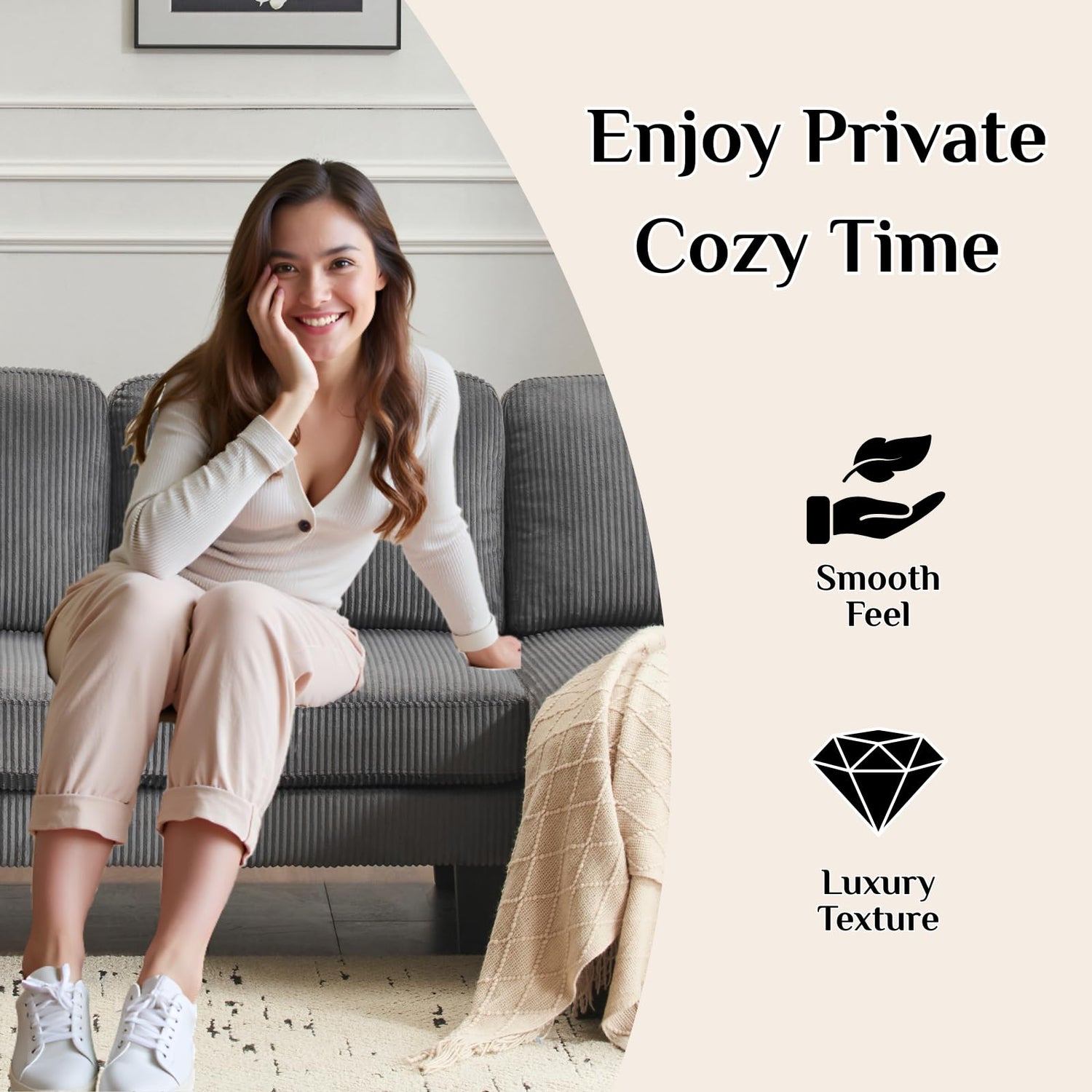Karl home U-Shape Sectional Sofa Couch 111" Modern 4-Seat Sofa with Chaises Corduroy Fabric Upholstered Covertible Couch with Wood Grain Legs for Living Room, Reception Room, Apartment, Dark Gray