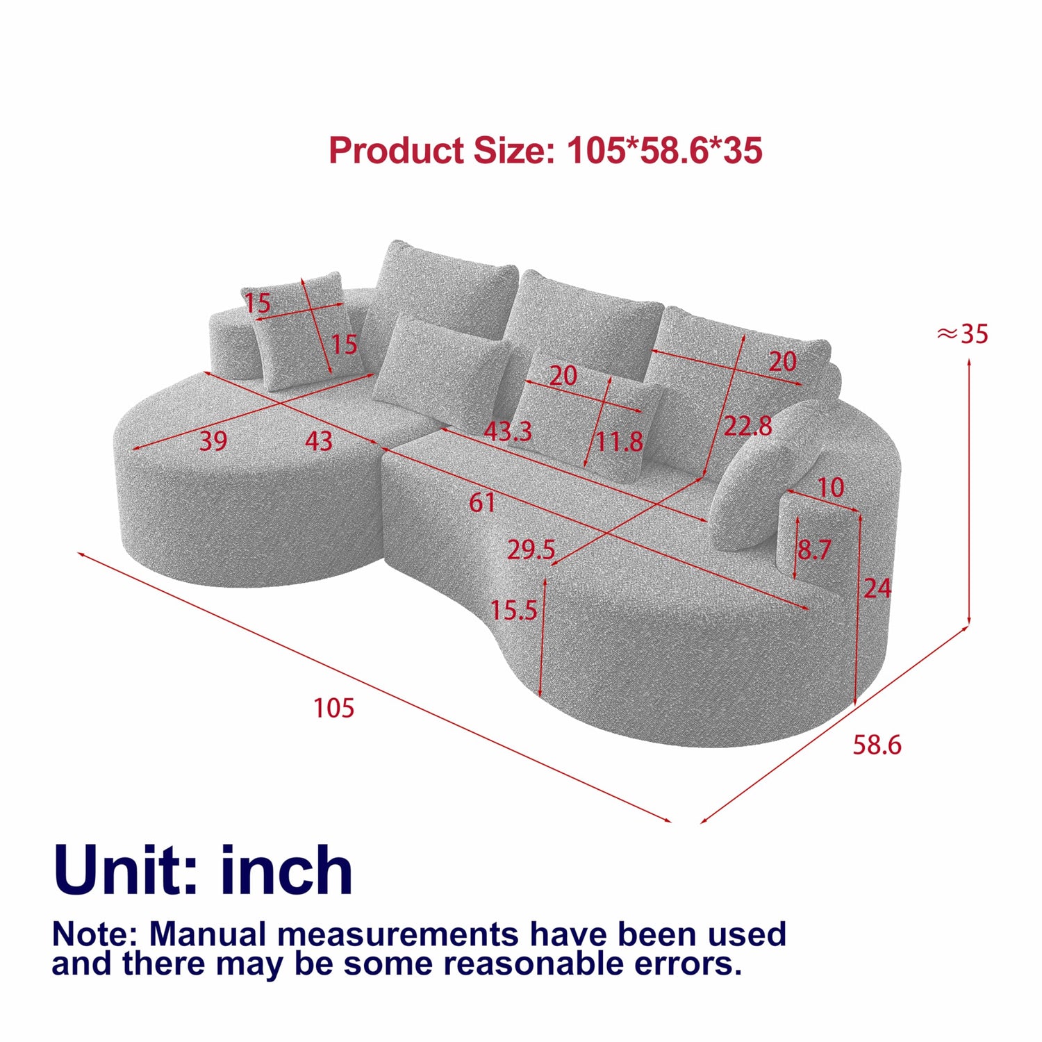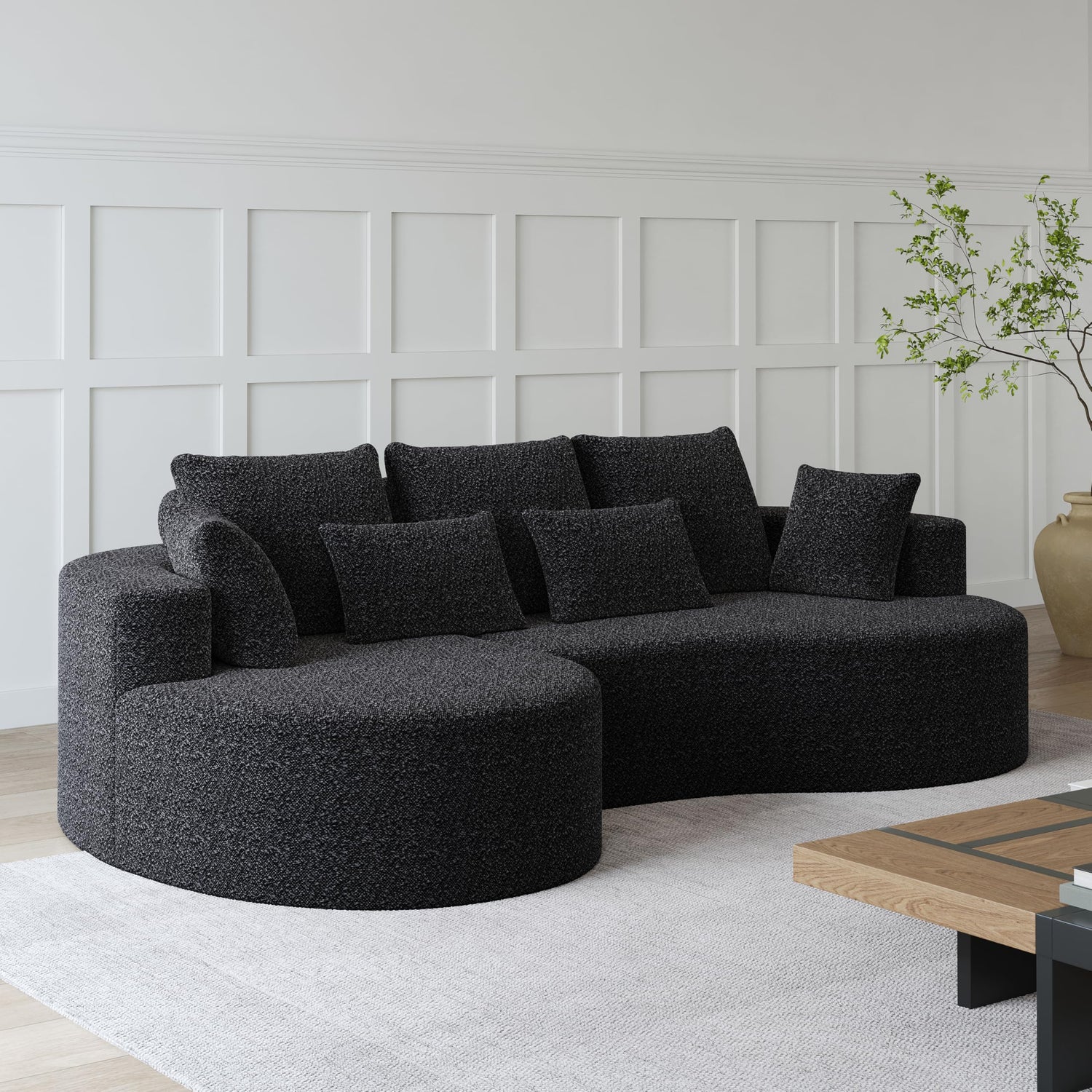 KEIKI 105" L Shaped Corner Couch with Chaise, Upholstered Curved Sectional Sofa, Chenille Sectional Couch for Living Room, Bedroom, Black
