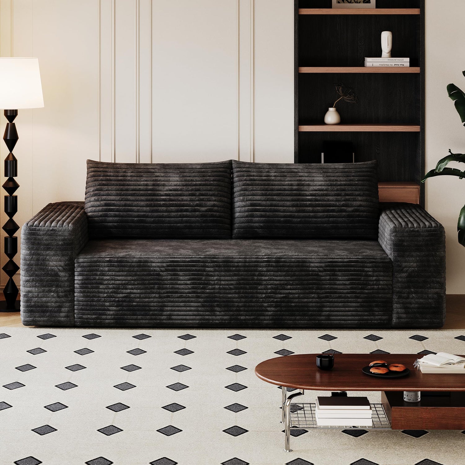 • Corduroy Fabric and High-density Foam: Our plush loveseat couch features soft corduroy fabric, which provides a warm and comfortable touch, gently wrapping the body like a cloud. The cushions of the no assembly couch are crafted from high-density foam, delivering a comfortable sitting or lounging experience while maintaining their shape even after long-term use.