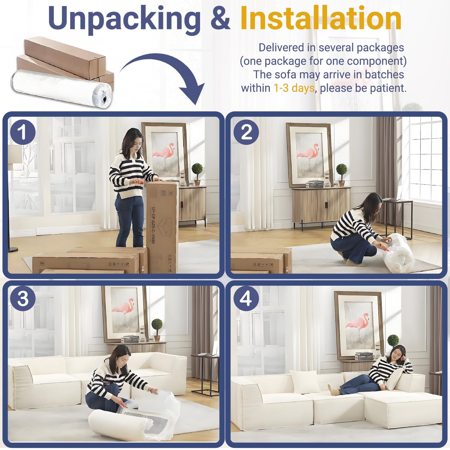 • Comfort Compressed Sofa Free Assembly Ready-to-use design requires no tools. High-resilience foam cushioning conforms to body contours (allow 24-48 hours for full expansion).