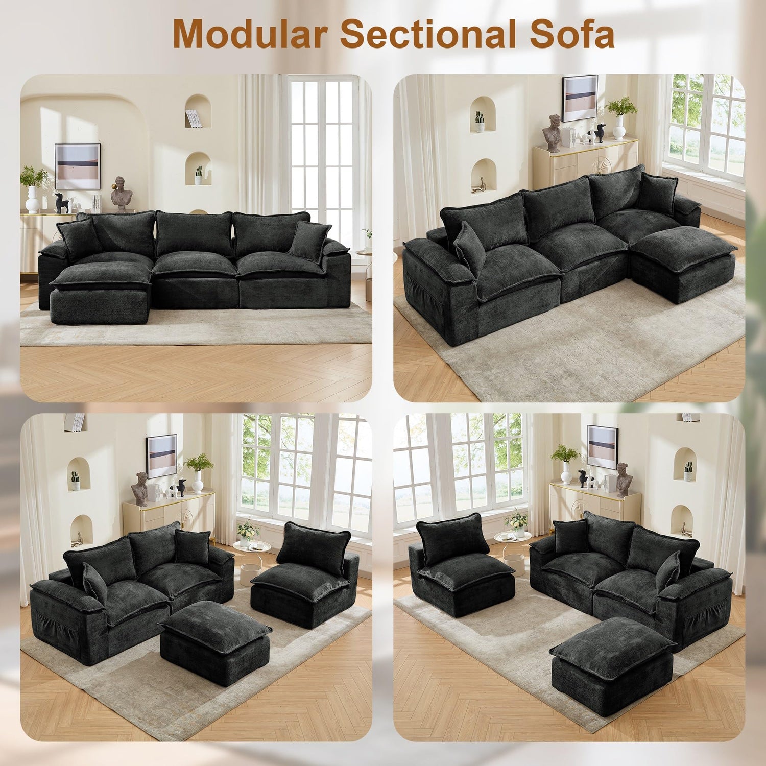 - Modular Freedom: Designed with 4 flexible pieces, this innovative sectional sofa effortlessly transforms to fit most spaces - from compact studio apartments to spacious basement entertainment areas. Within minutes, you can convert it into two comfortable guest chaises when hosting visitors, arrange it as a relaxing L-shaped chaise lounge sofa for leisure time, or even use individual pieces as convenient footrests. The intelligent space-saving design maintains a clean, organized aesthetic.