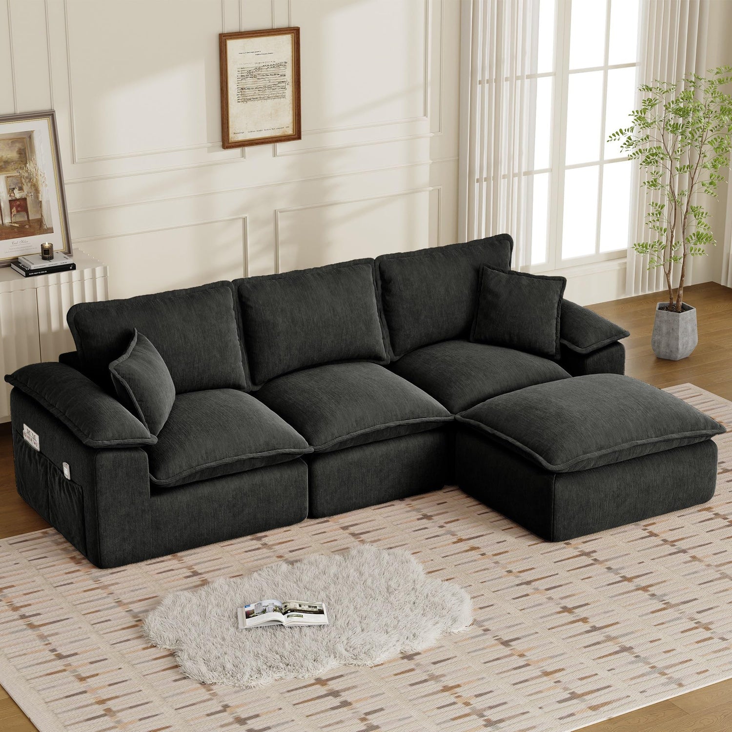 - Comfort Design: L-shaped sectional couch, featuring thick sponge cushions (7" thick), plush armrests, and a legless design. The legless, low-profile design combined with wide, deep seats provides that perfect 'sinking in' feeling while maintaining ergonomic support. Our cloud couch simulates a truly cloud-like experience with its high-resilience sponge filling. Whether you're binge-watching shows or hosting friends, this is everyday luxury at its most practical.