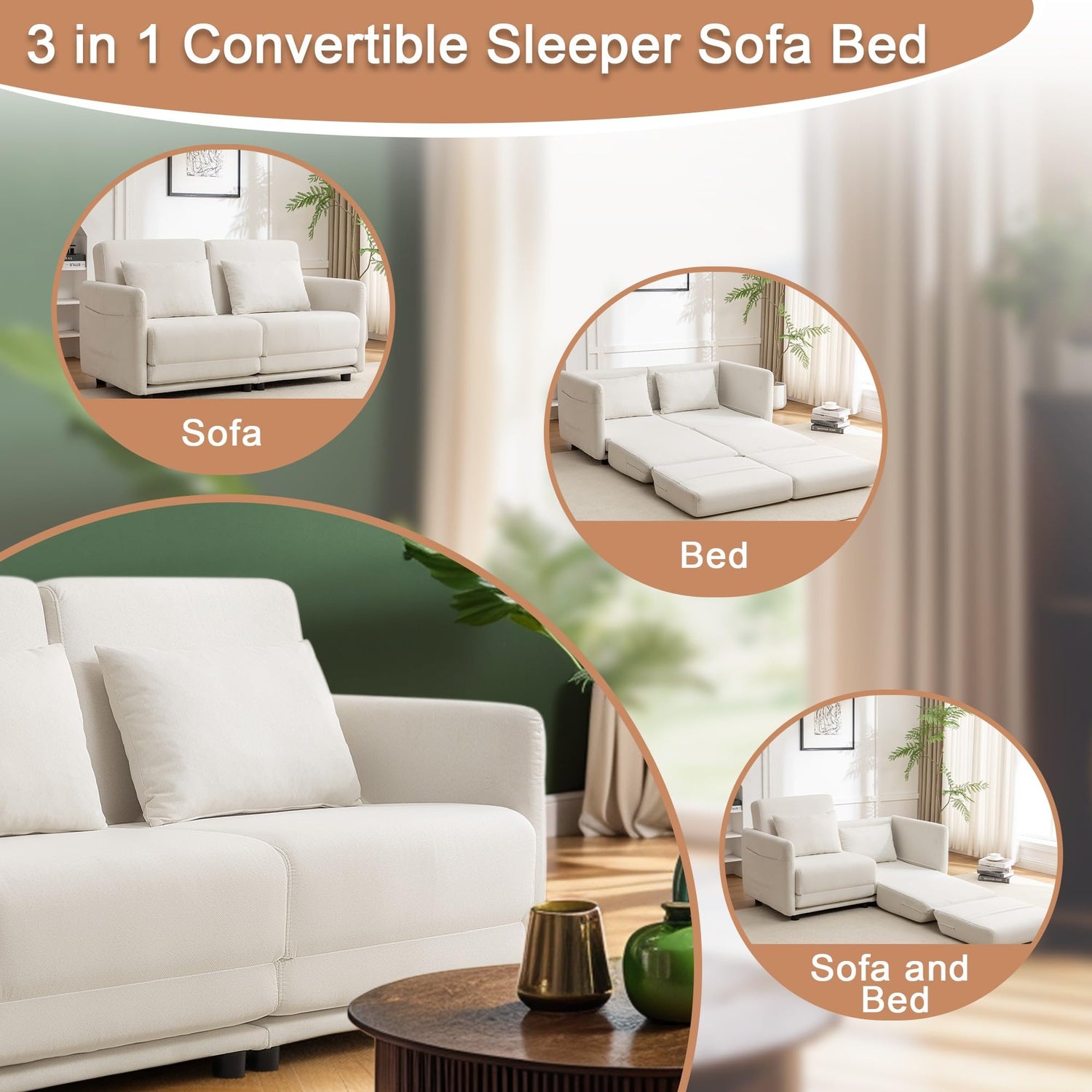 Korser 56.3" W x 74.8" D Small Full Size Pullout Sofa, Futon Sofa Bed with Side Pockets, Convertible Loveseat with Washable Breathable Cover, Living Room Futon Sofa, White
