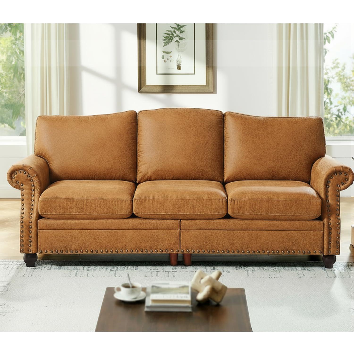 LegacyAmerhome 85'' Faux Leather Couch for Living Room, Mid Century Modern Leather Sofa with Rolled Arm, Classic 3 Seat Brown Couches with Nailheads Trim, Big Comfy Couch with Deep Seat for Apartment