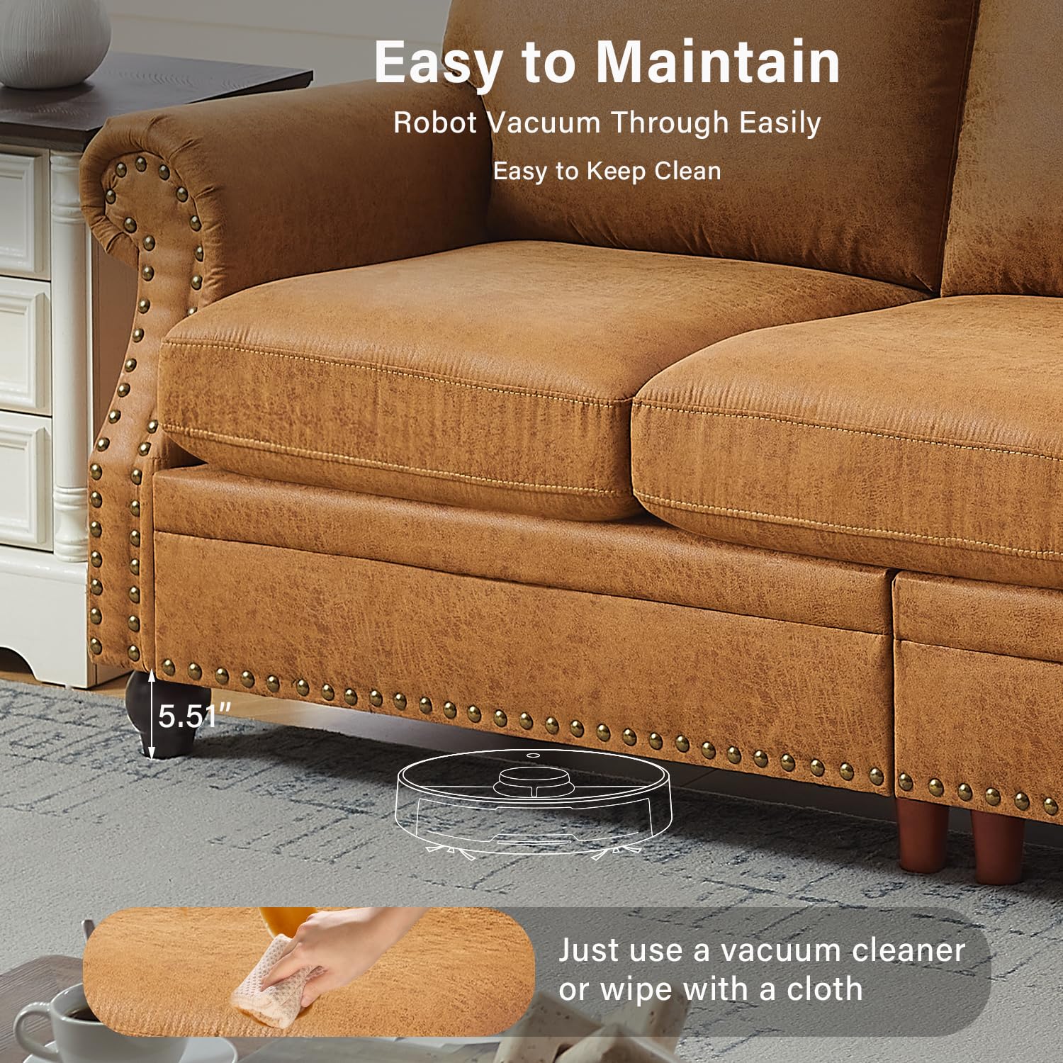 - 【Versatile Couches for Small Space】Perfectly sized at 85"L x 33"W x 37"H, the vintage couch can accommodate 3-4 people, very suitable for studio, dorm room, waiting room, reception areas. Oversized sectional sofa can be used as a sofa bed when you need to rest