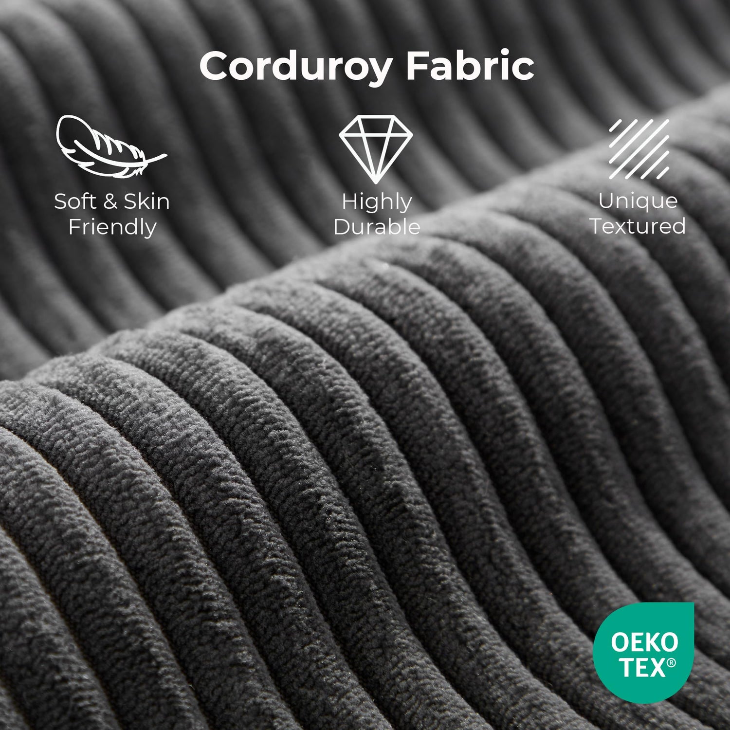 - Premium Corduroy Upholstery: Upholstered in soft, skin-friendly corduroy fabric that is OEKO-TEX certified. This highly durable material resists stains, pilling, and fading, making it ideal for households with children and pets. It offers easy maintenance and long-lasting elegance, adding a touch of sophisticated warmth to any modern space
